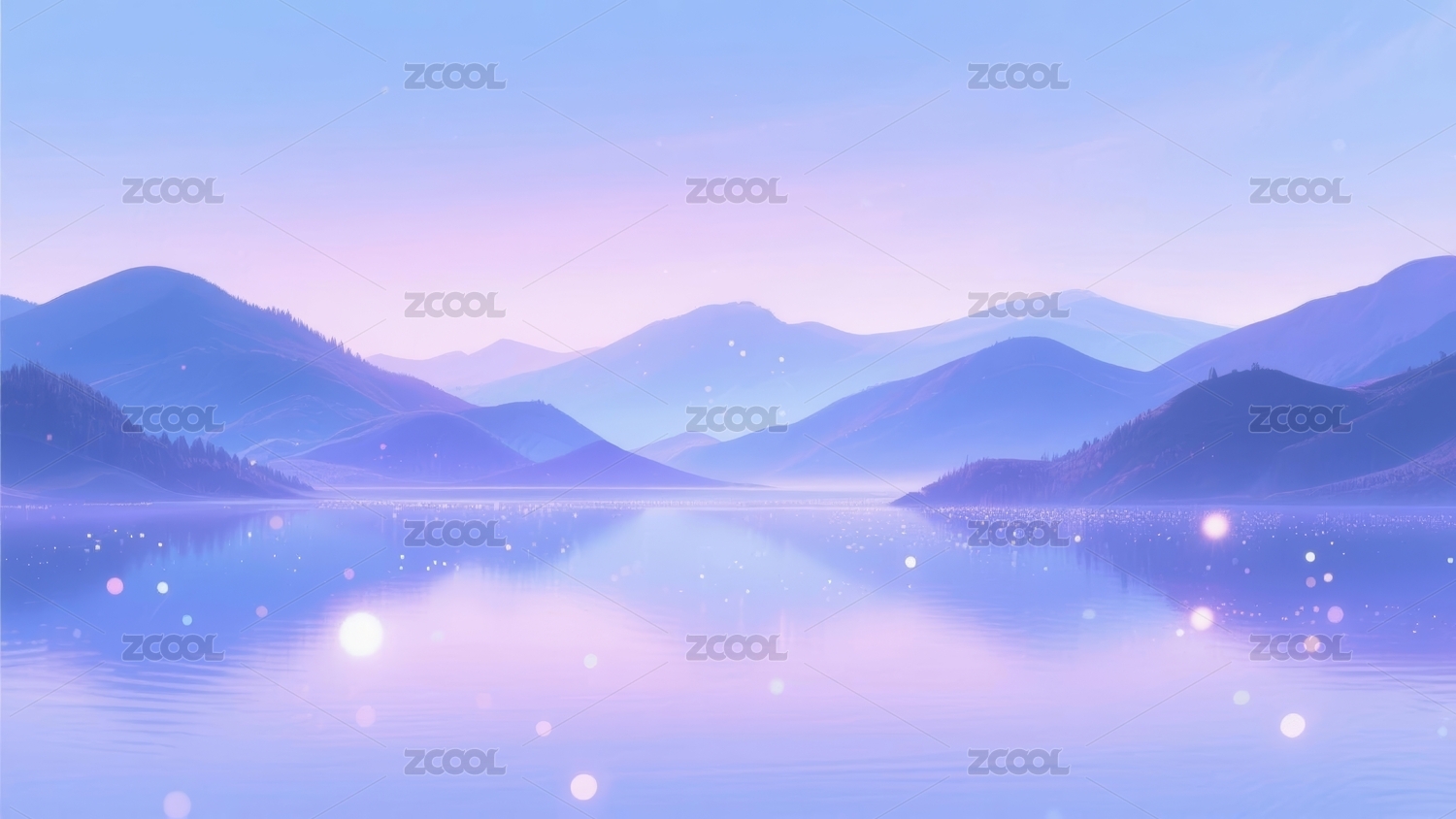 山水景梦幻调山水湖泊场景