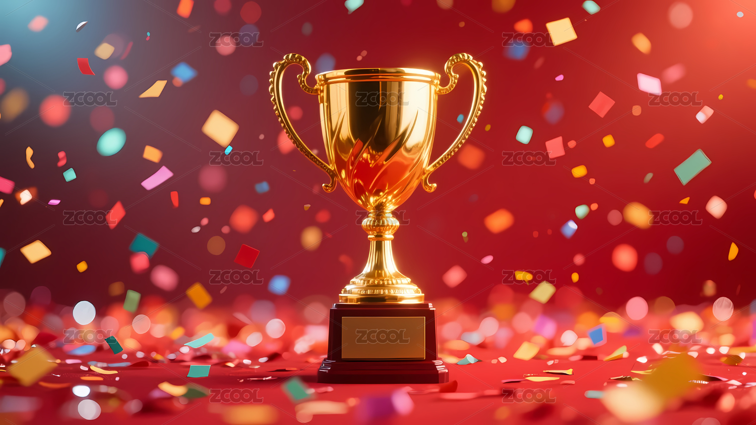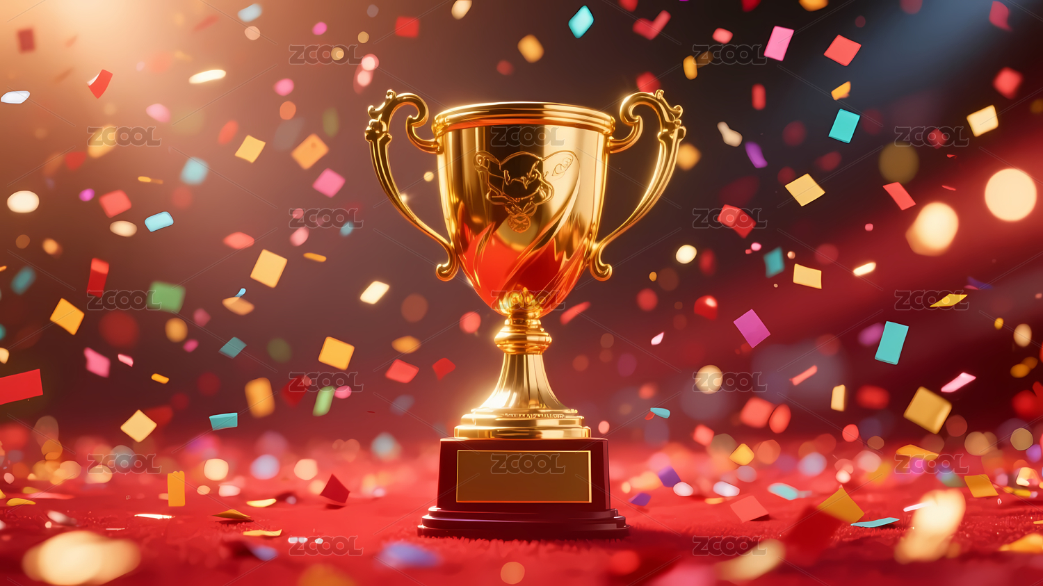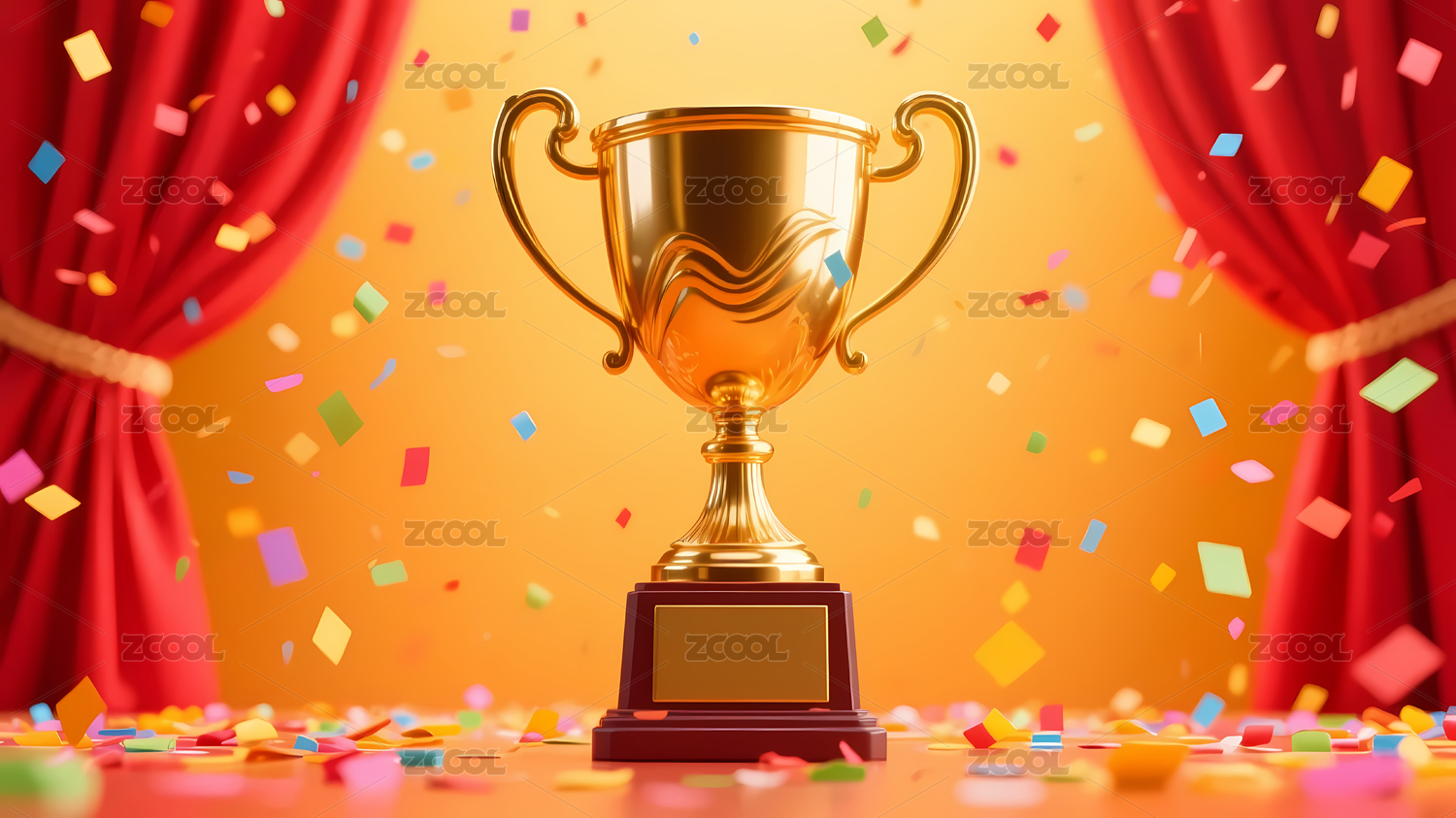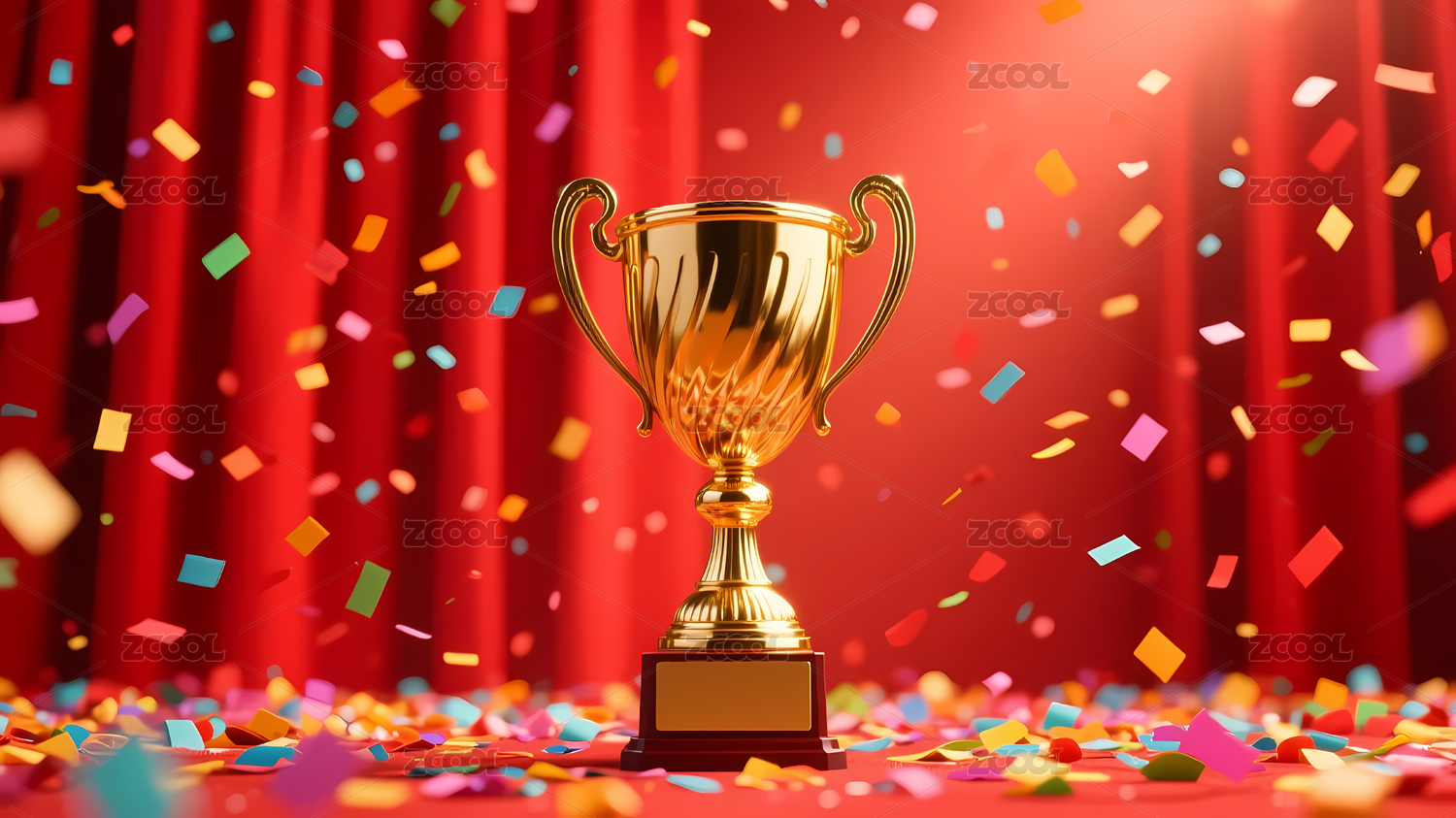 金色奖杯与五彩纸屑
