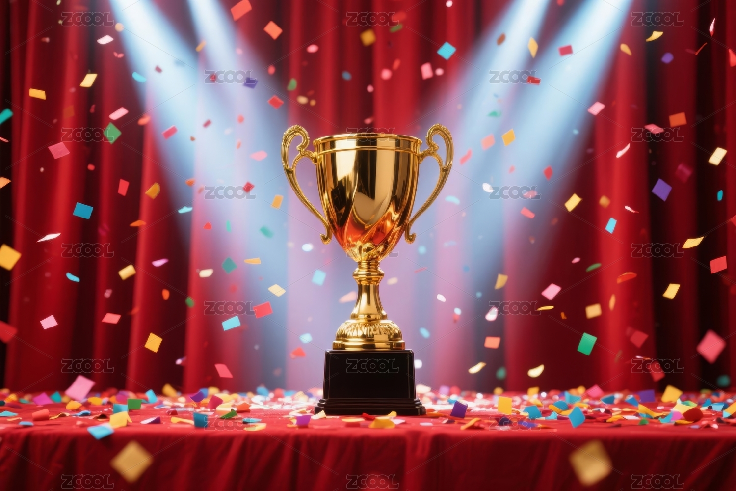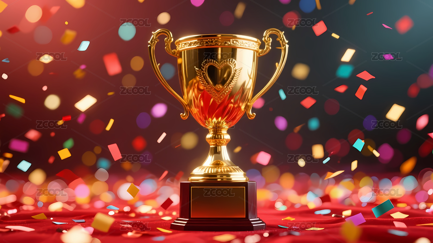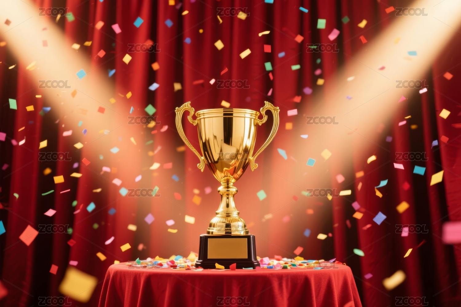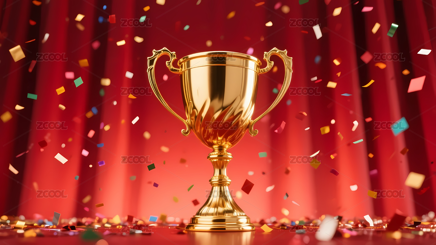 金色奖杯与五彩纸屑