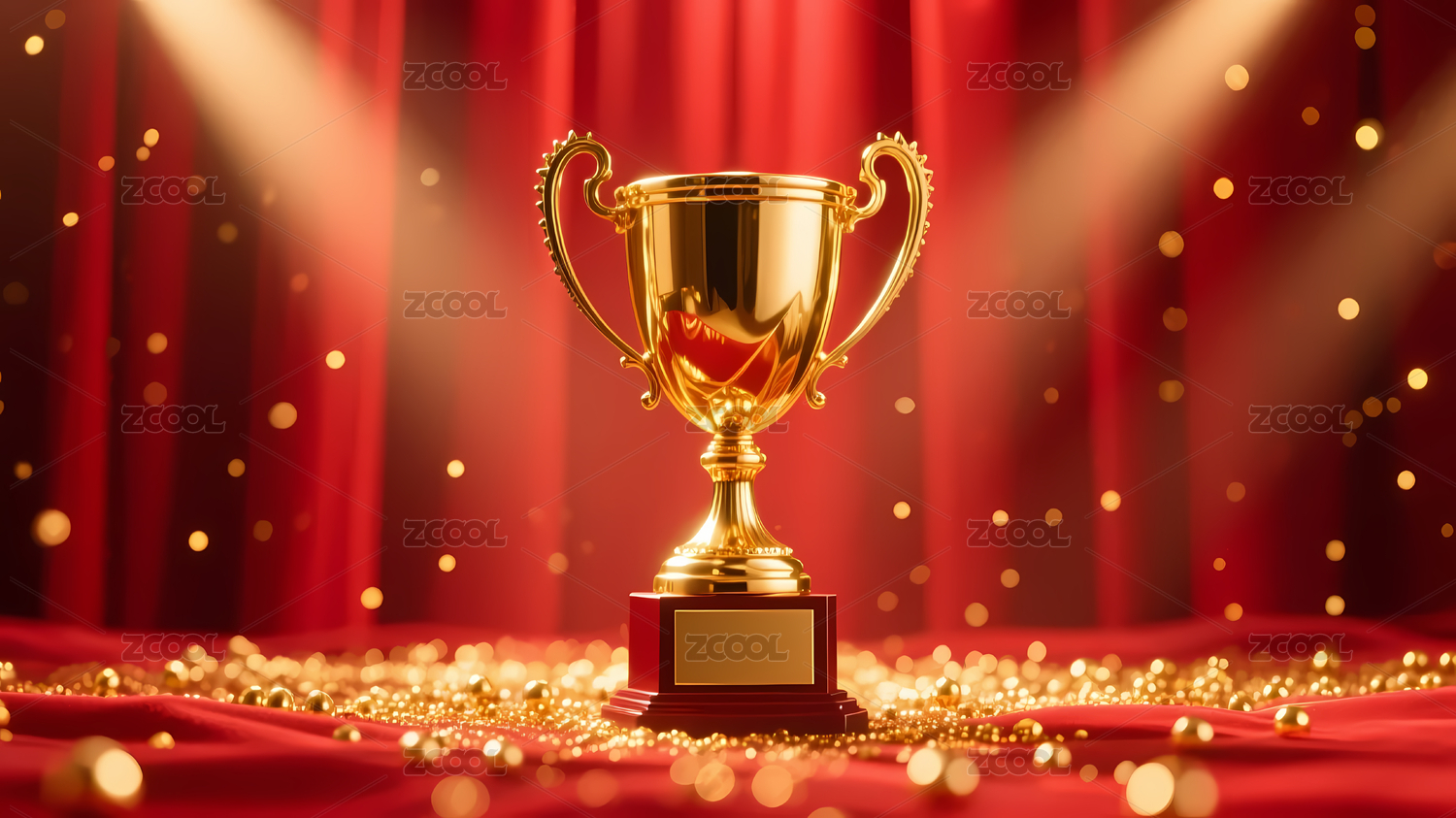 金色奖杯与红色窗帘