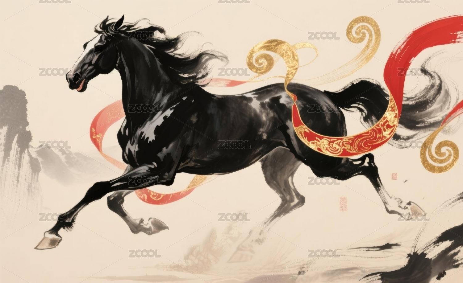 水墨风格奔跑的骏马