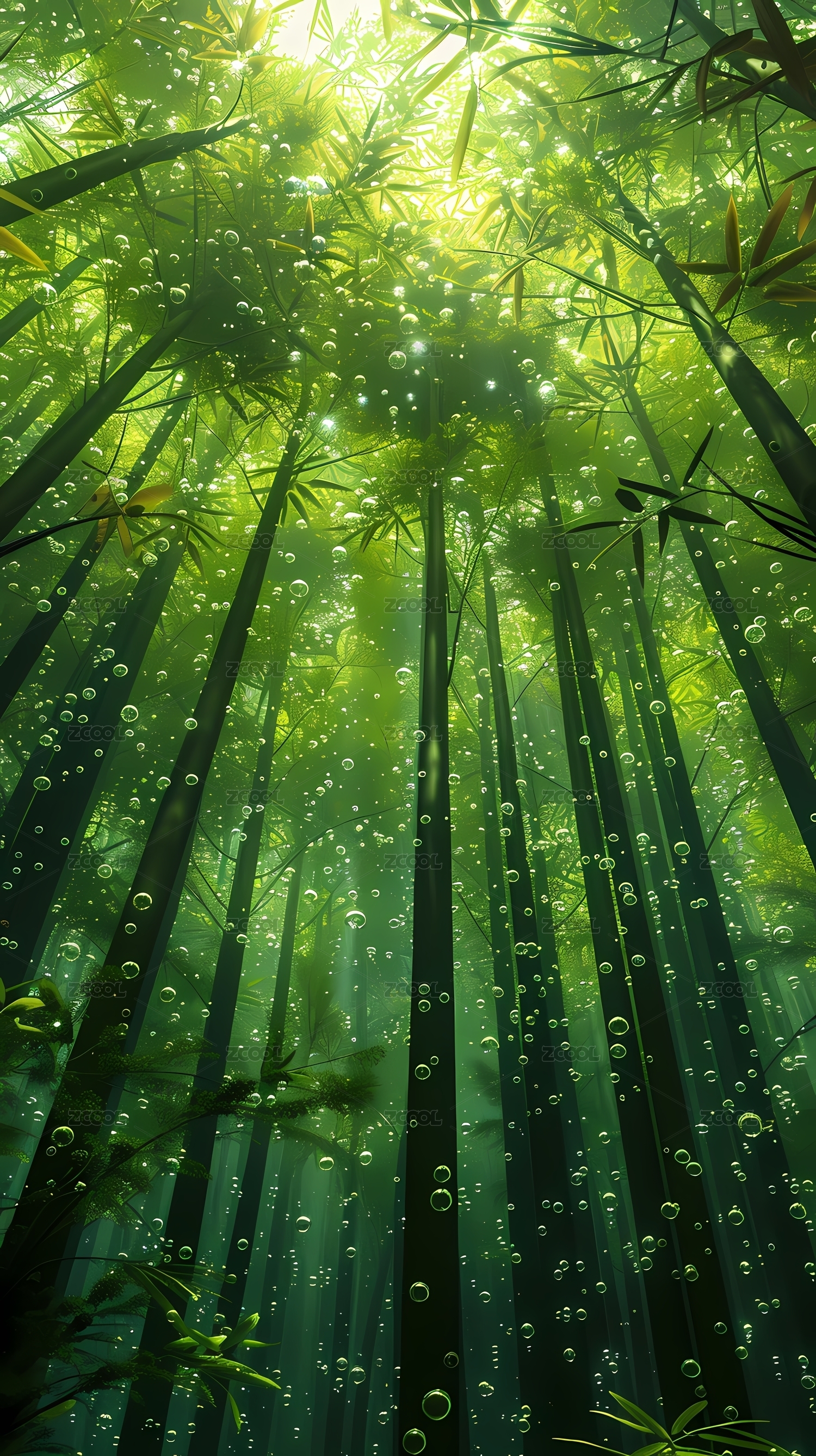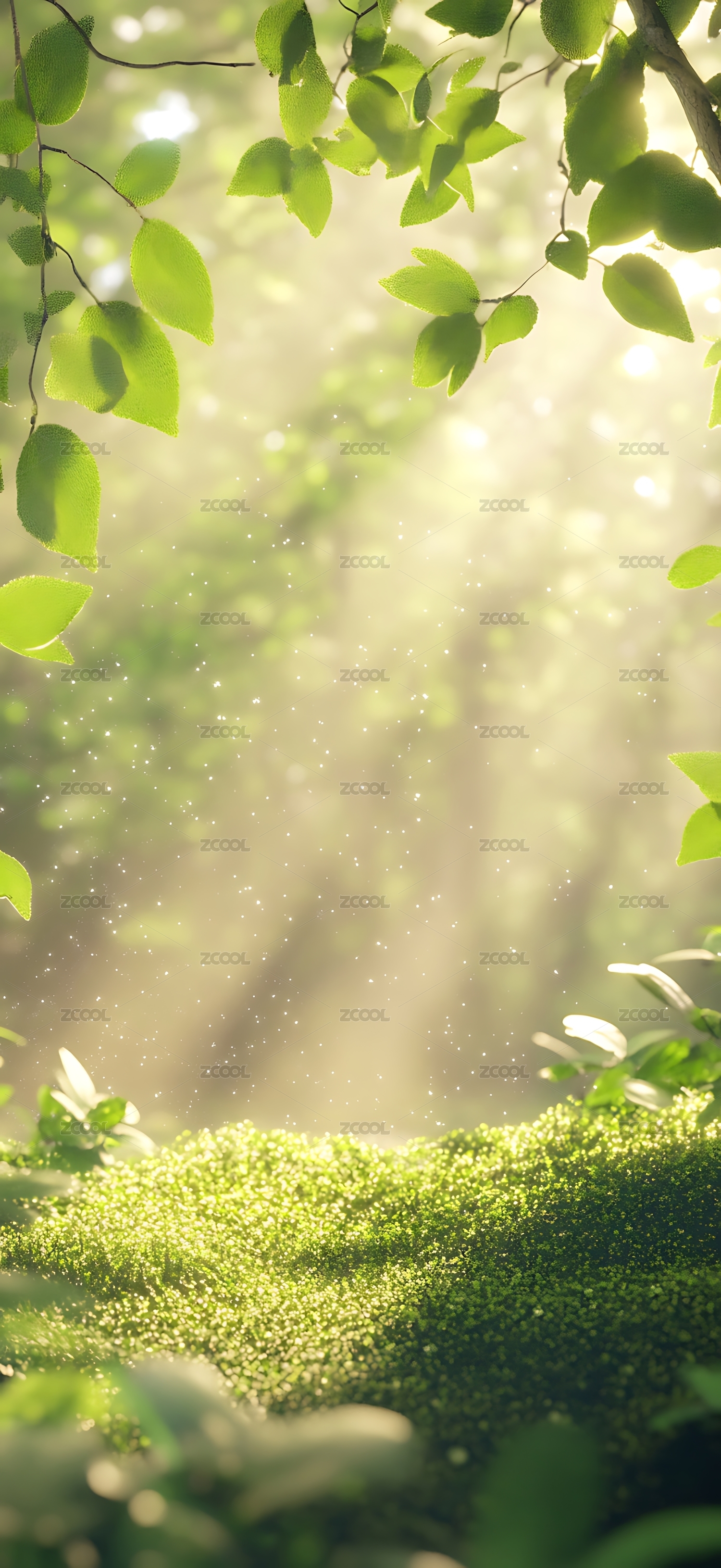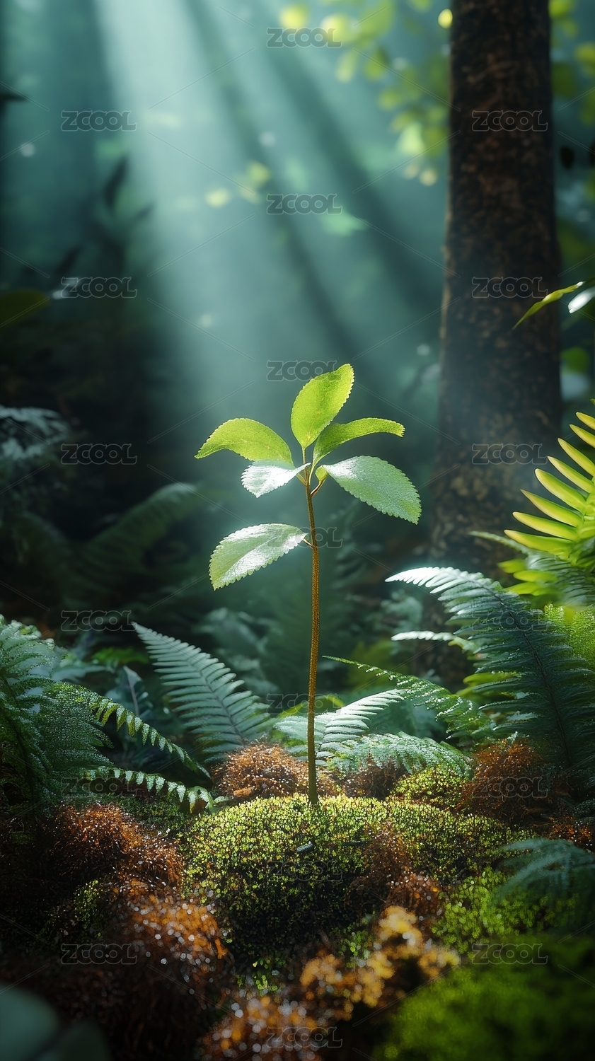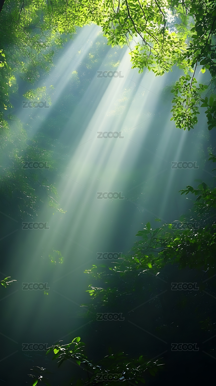 郁郁葱葱的热带雨林阳光穿过树叶照射进来