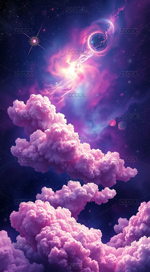 紫色星云下的梦幻云海