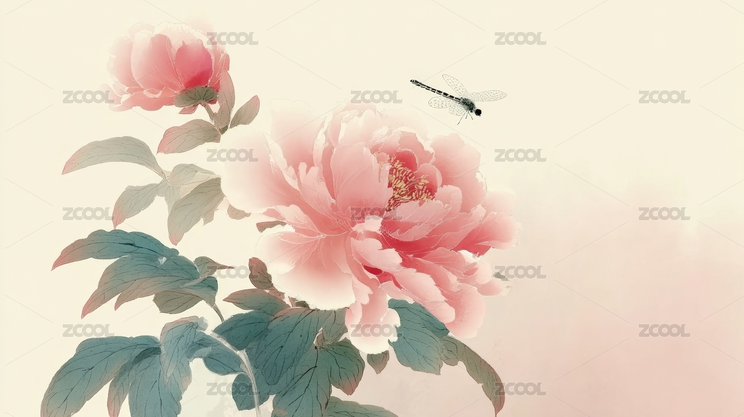 水墨牡丹与蜻蜓