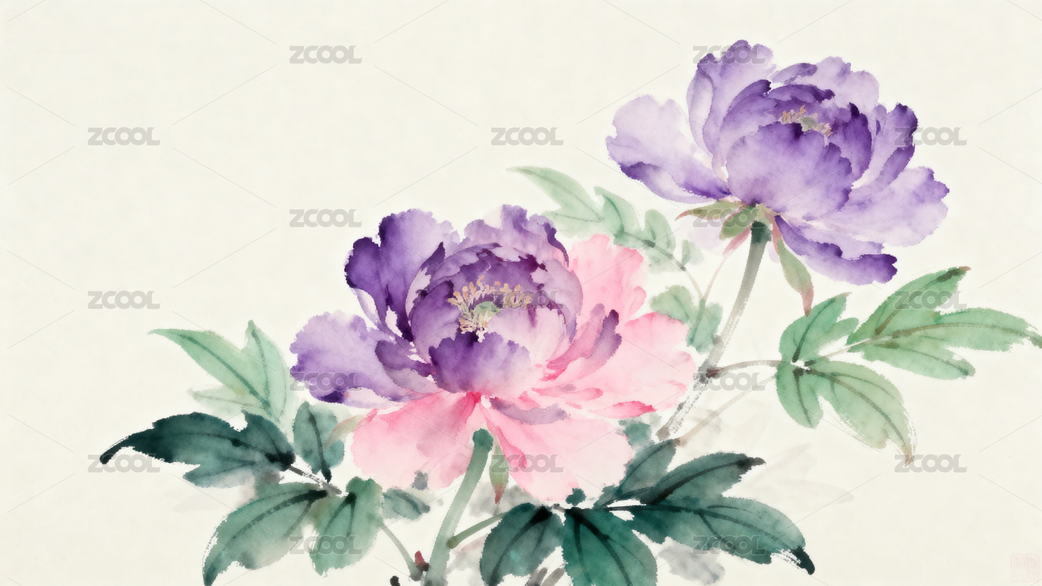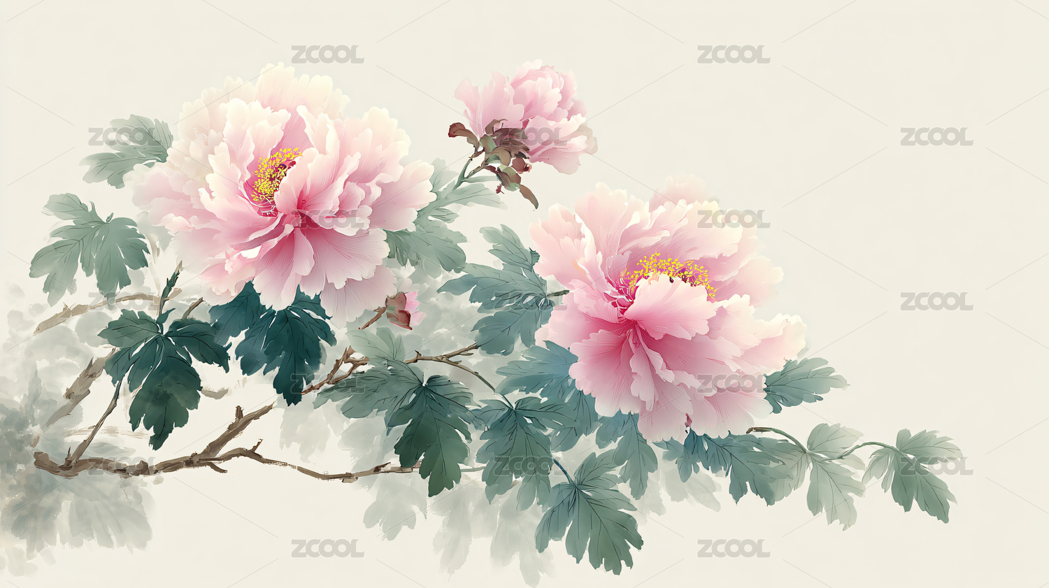 国画风格的牡丹花