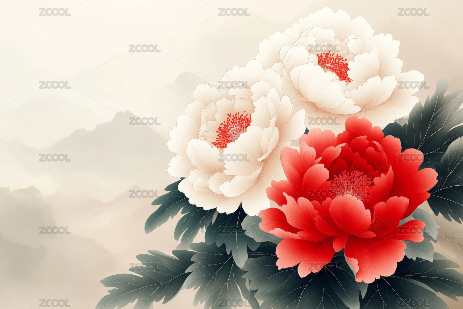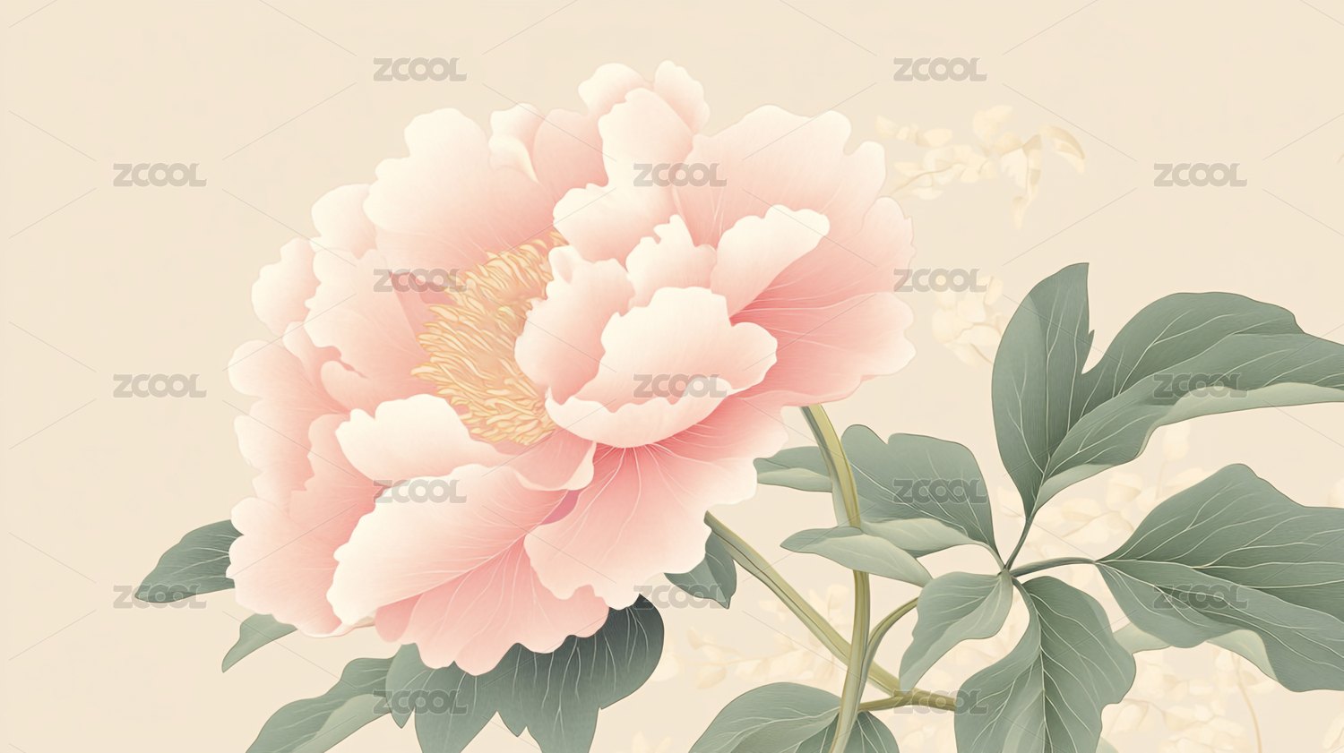 复古工笔风格牡丹花