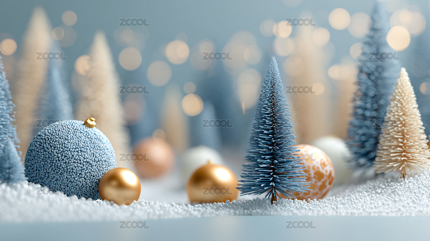 圣诞,装饰,小球,小树,节日,氛围,金色,雪景,温馨,庆典