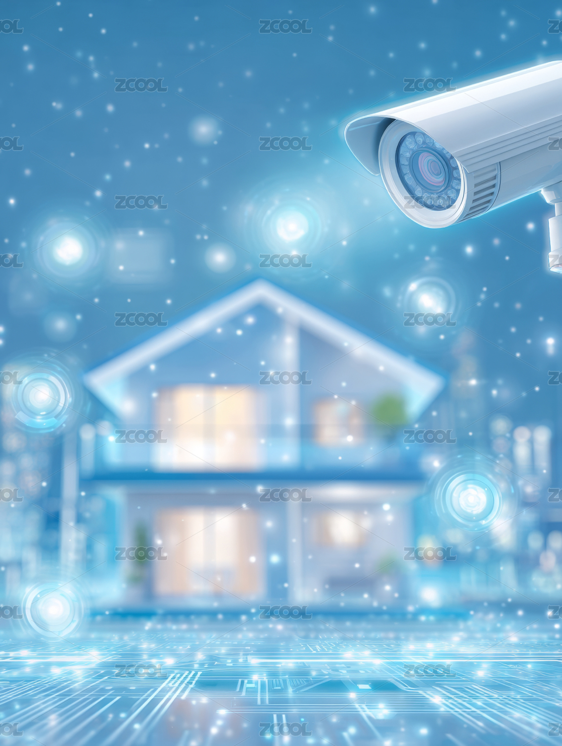 监控摄像头,科技,光线,建筑,未来感,蓝色,数据流,智能化