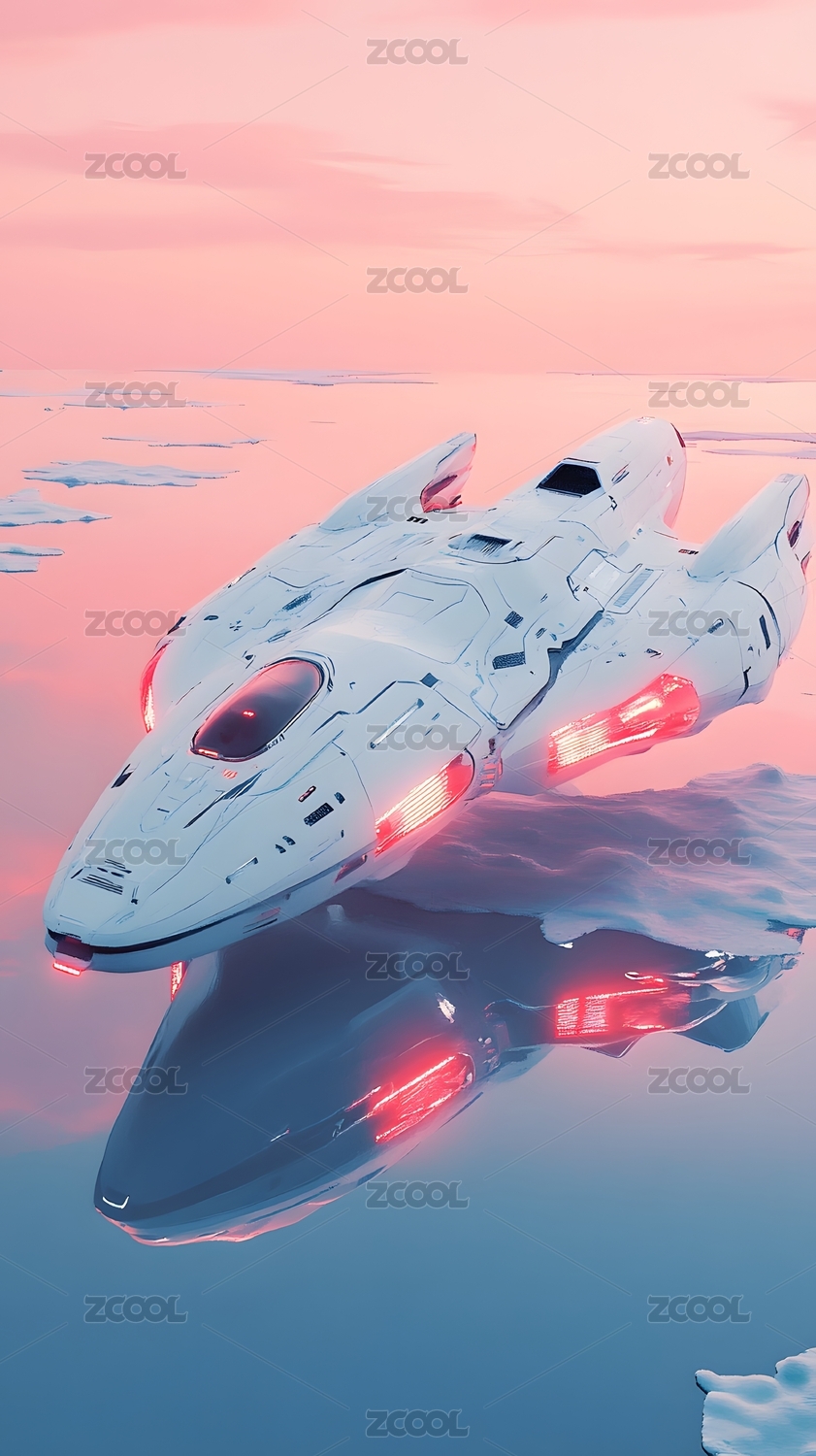 飞船,科技,未来,灯光,反射,水面,建筑,设计,先进,蓝色