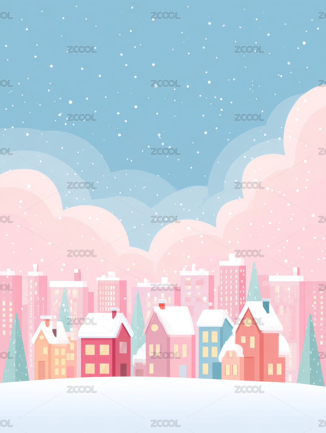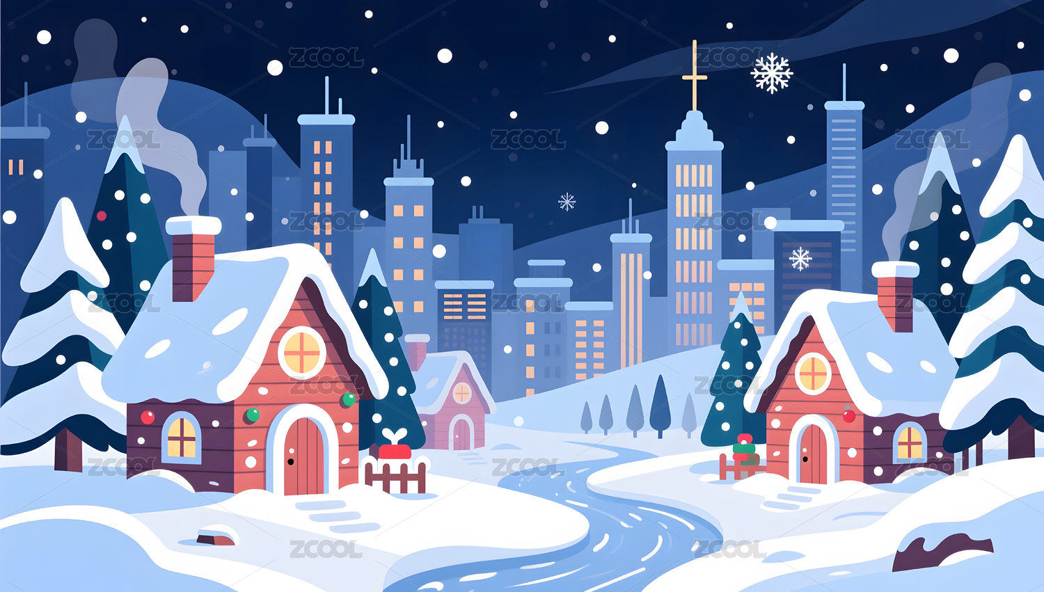 冬季,城市,雪景,高楼,树木,蓝天,云朵,夜晚,灯光