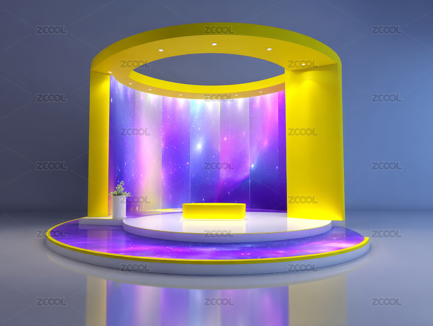舞台,炫彩,黄色,紫色,光效,圆形,展示,现代,室内,设计