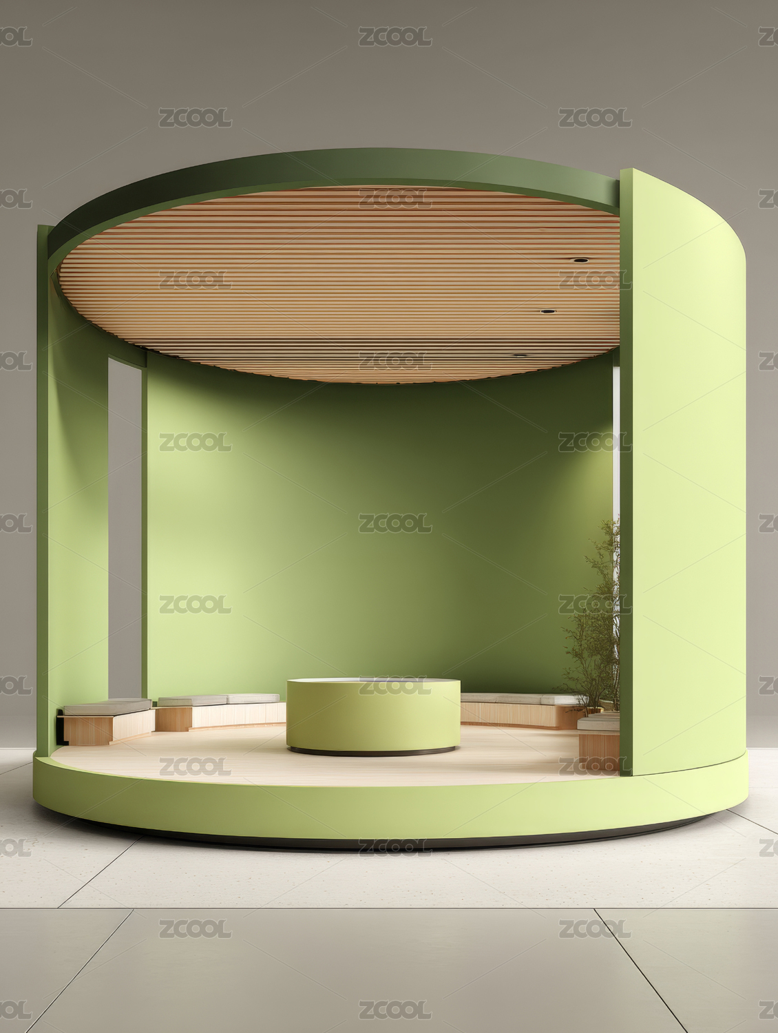 舞台,现代,简约,圆形,绿色,白色,展示,设计,室内