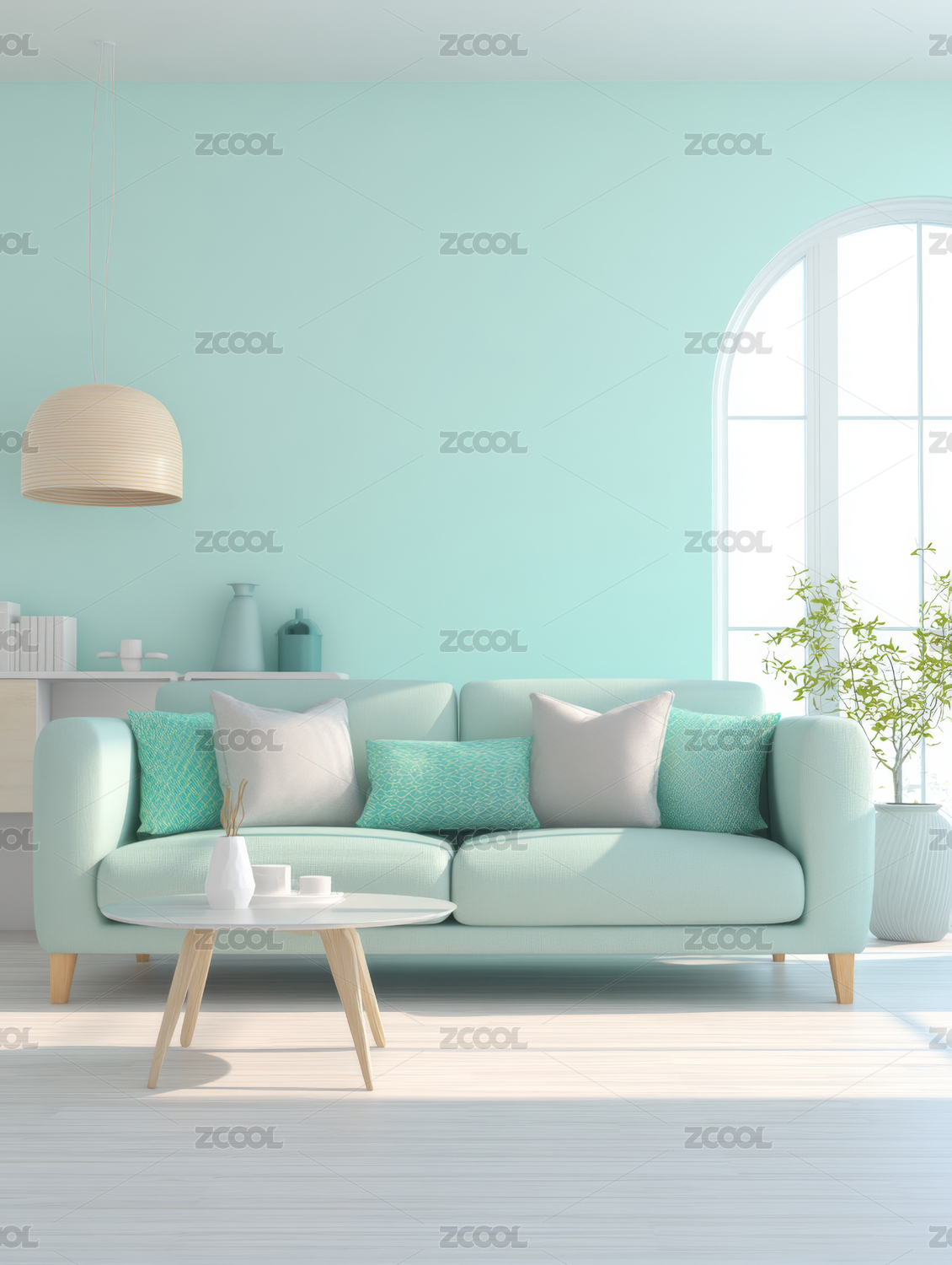 客厅,沙发,植物,吊灯,靠垫,茶几,地毯,室内,现代,装饰