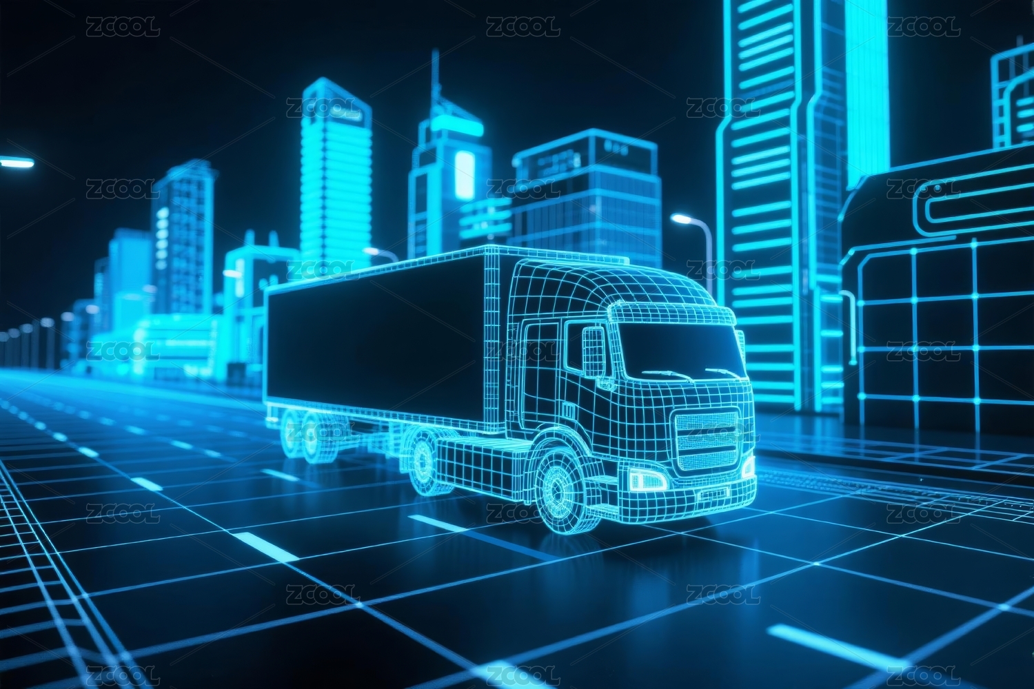 卡车,未来,智能,物流,科技,运输,城市,照明,高速,公路