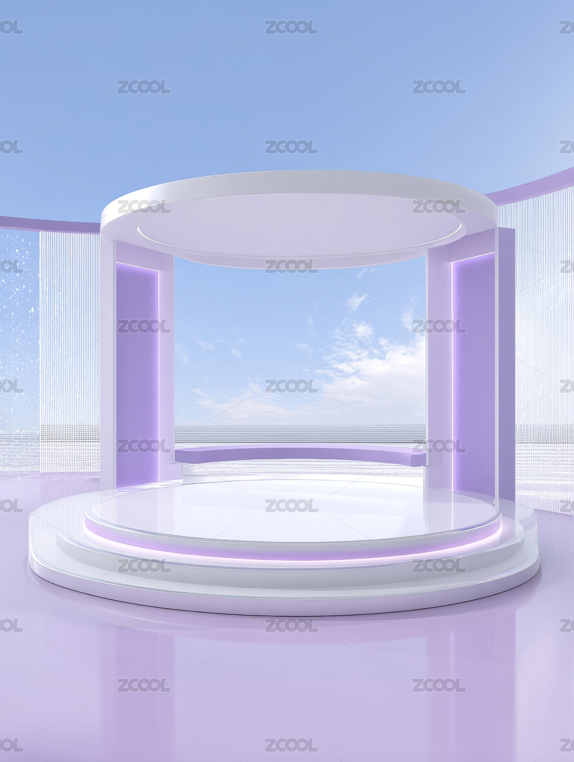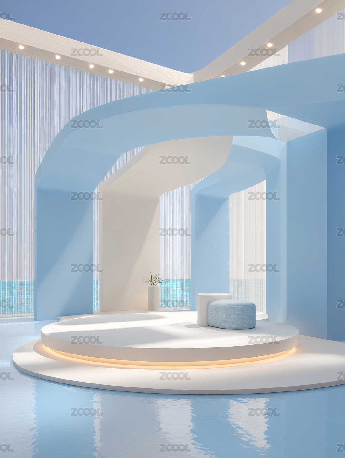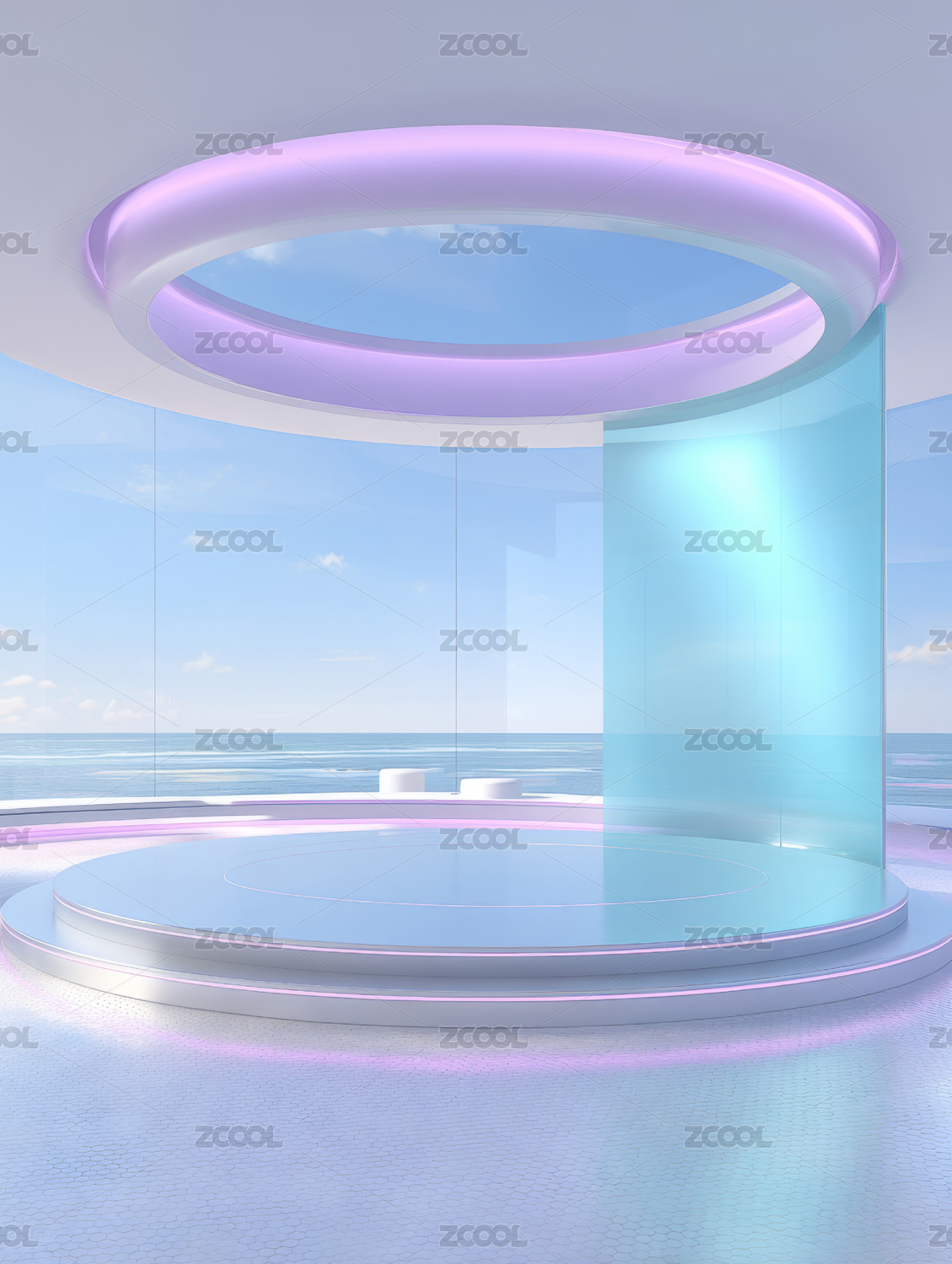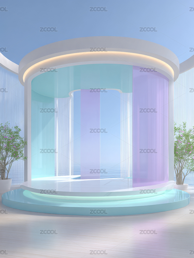 未来感,展示台,室内,透明,材质,灯光,效果,植物,圆形,设计