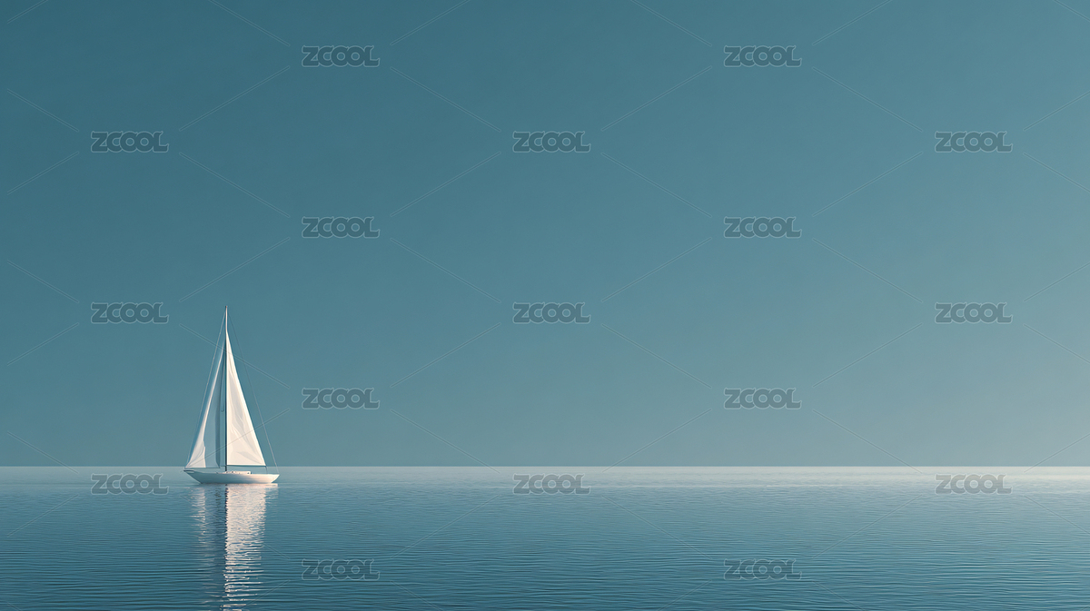 海面,白帆,风景,极简,海洋,帆船,宁静,蓝色,自然,户外