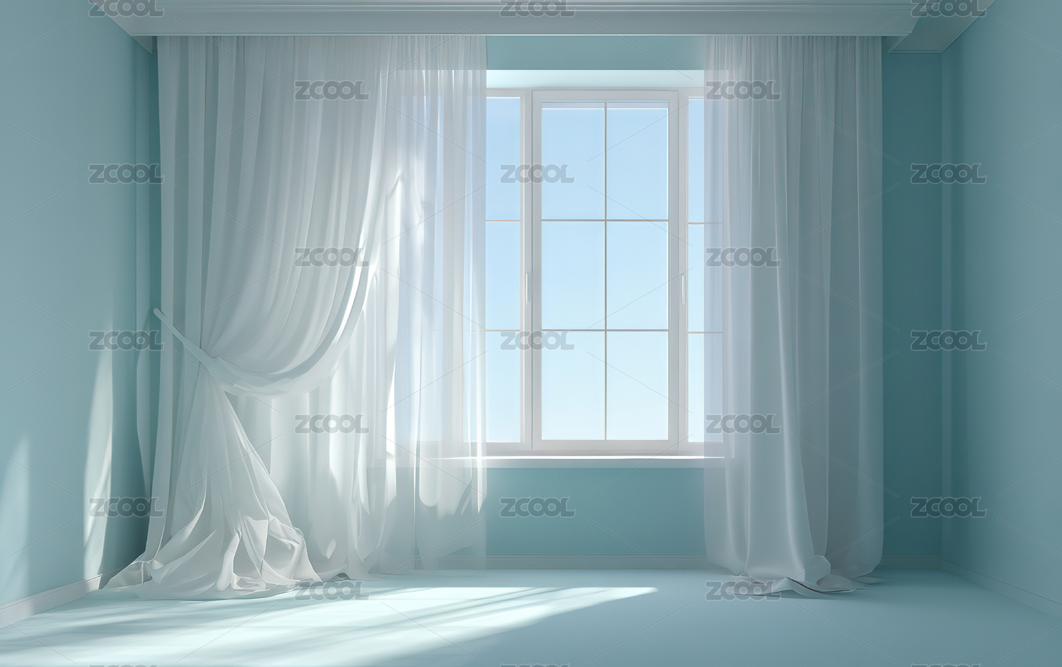 室内,光线,窗户,窗帘,白色,天空,蓝色,背景,窗台,阴影