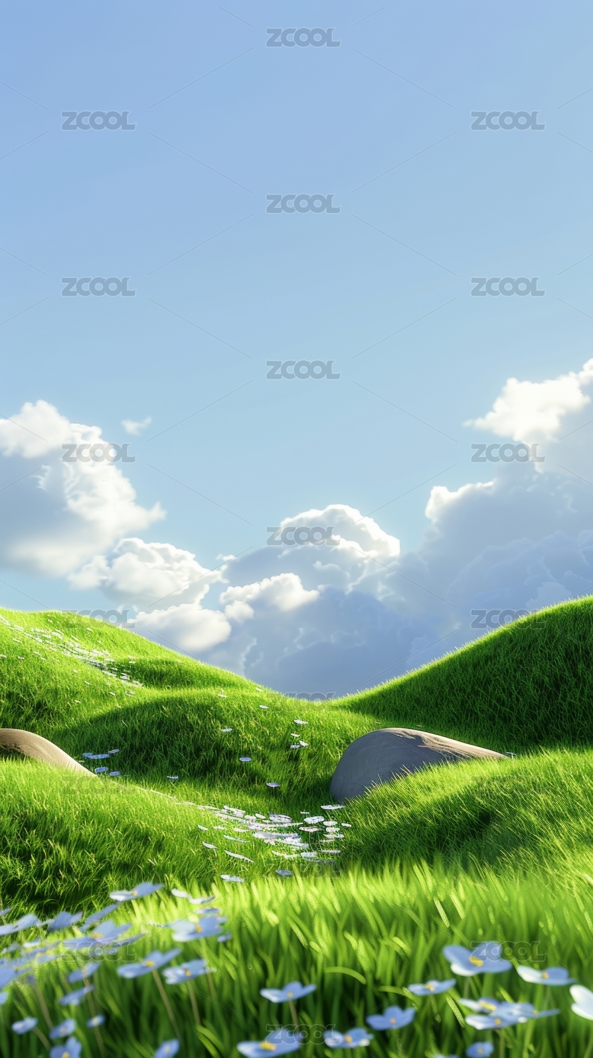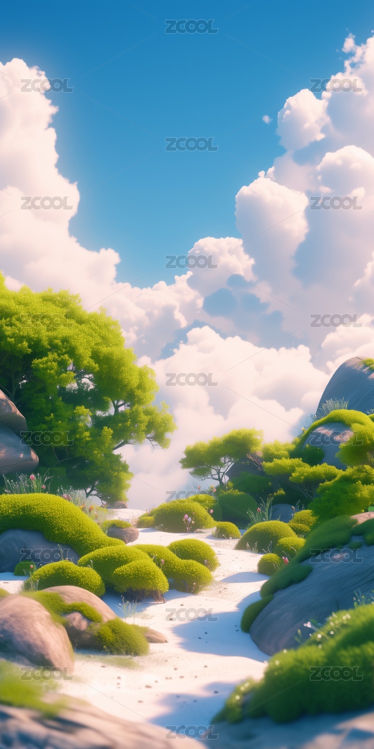清新明亮羊毛毡毛绒自然风景3D卡通插画