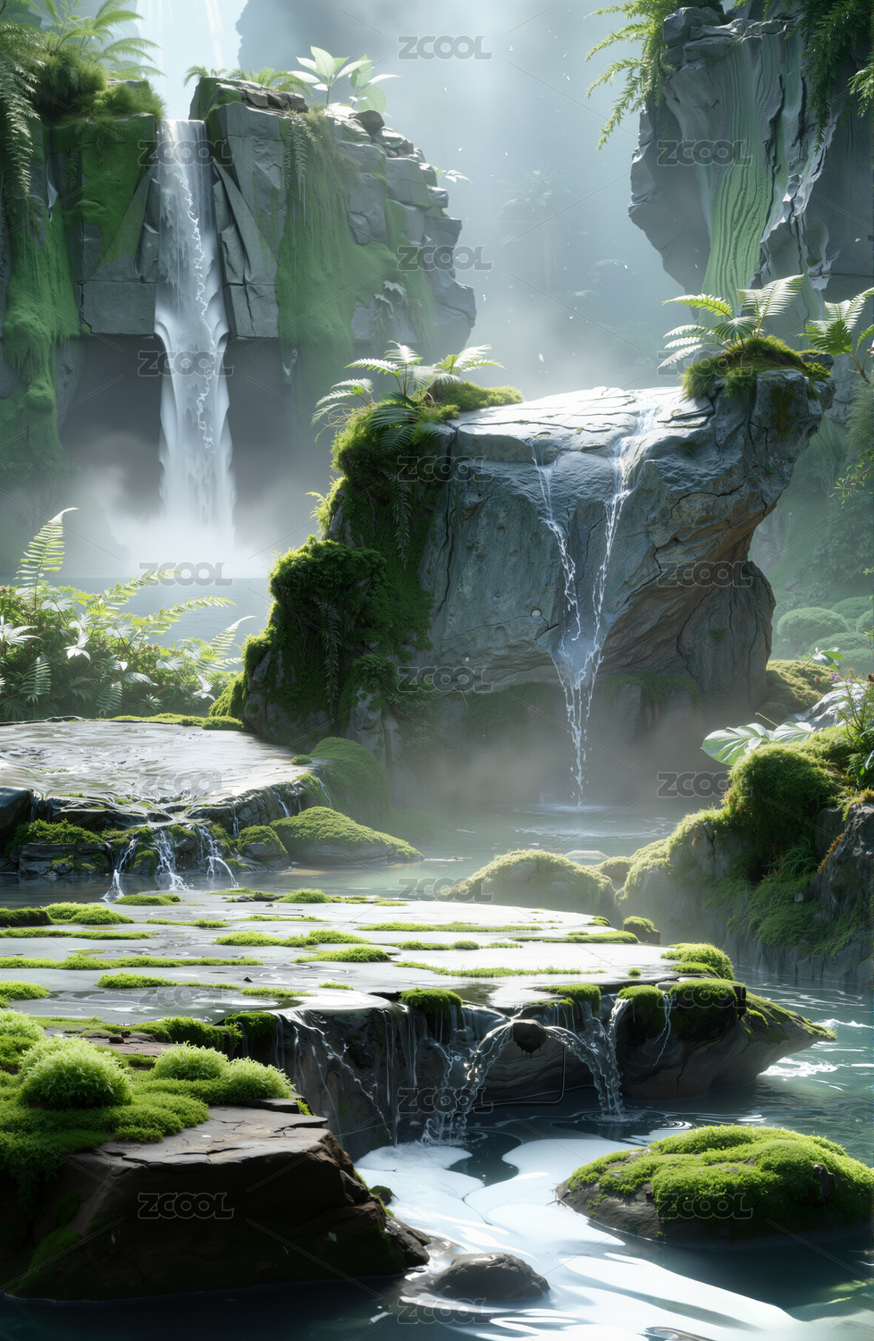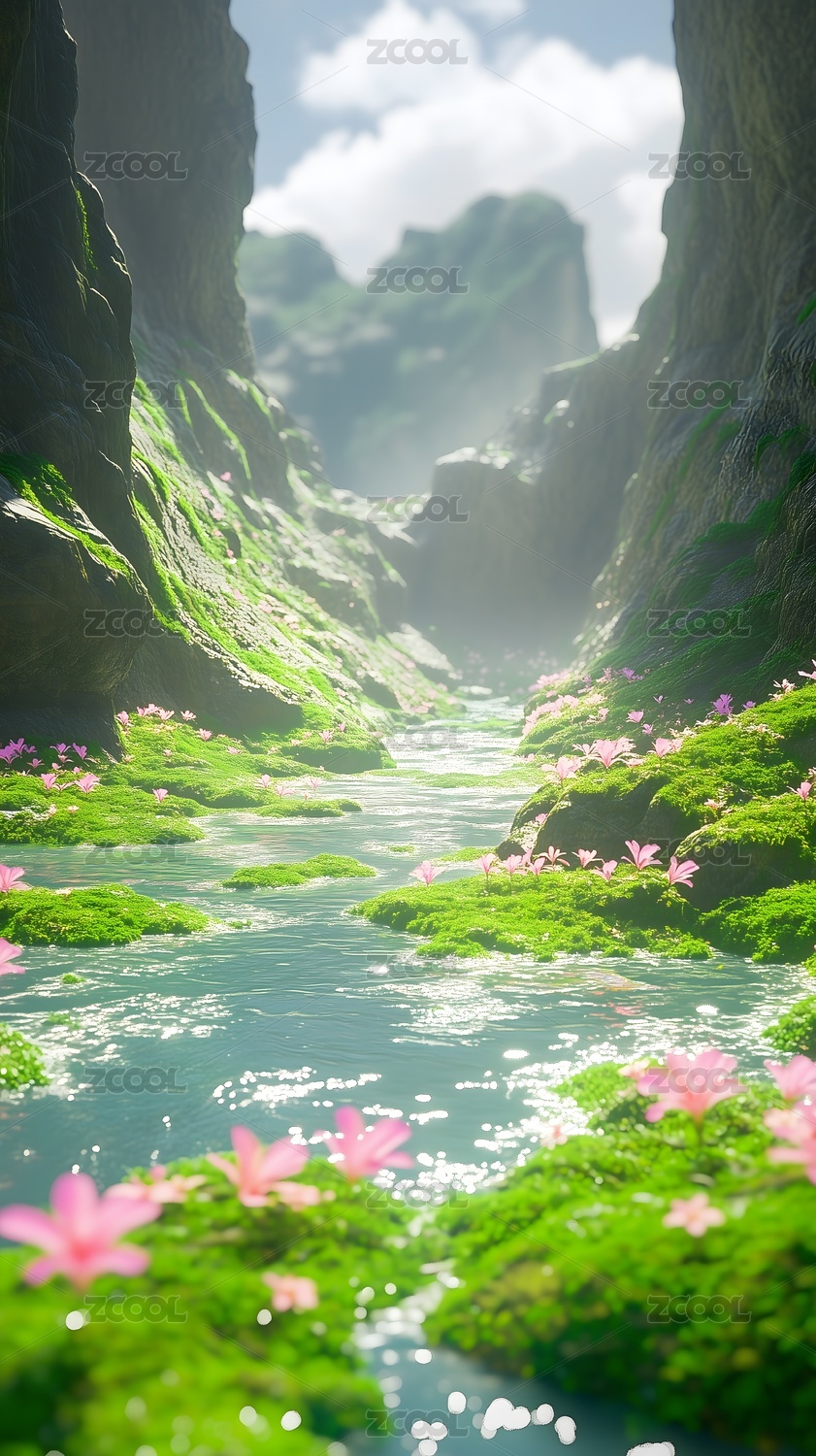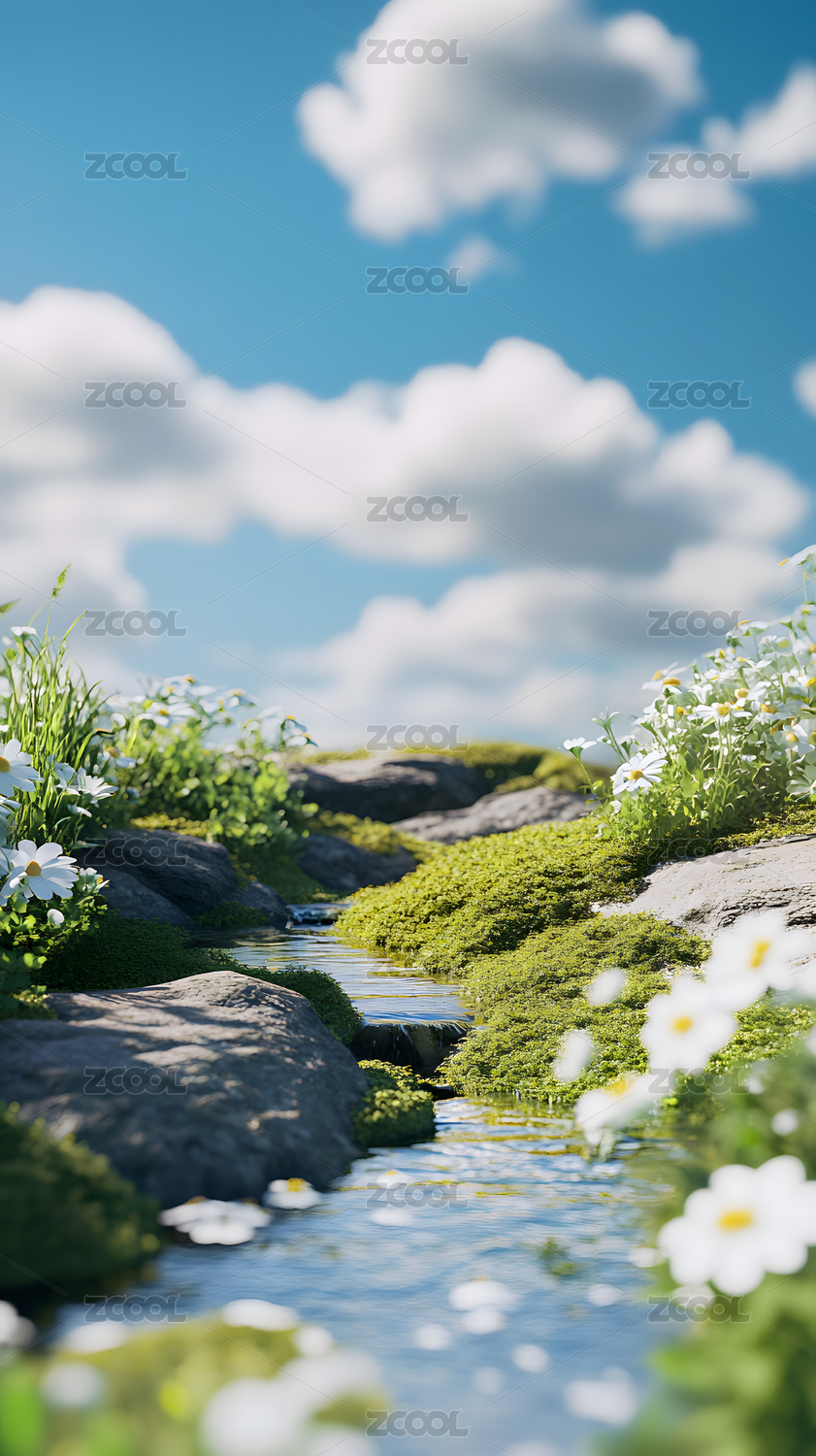 溪流,绿苔,石头,清澈,自然,蓝天,树木,水体,宁静,生态