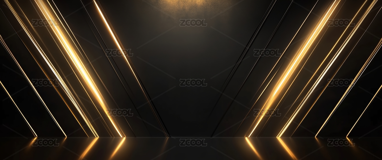 黑色背景下的金色灯光舞台
