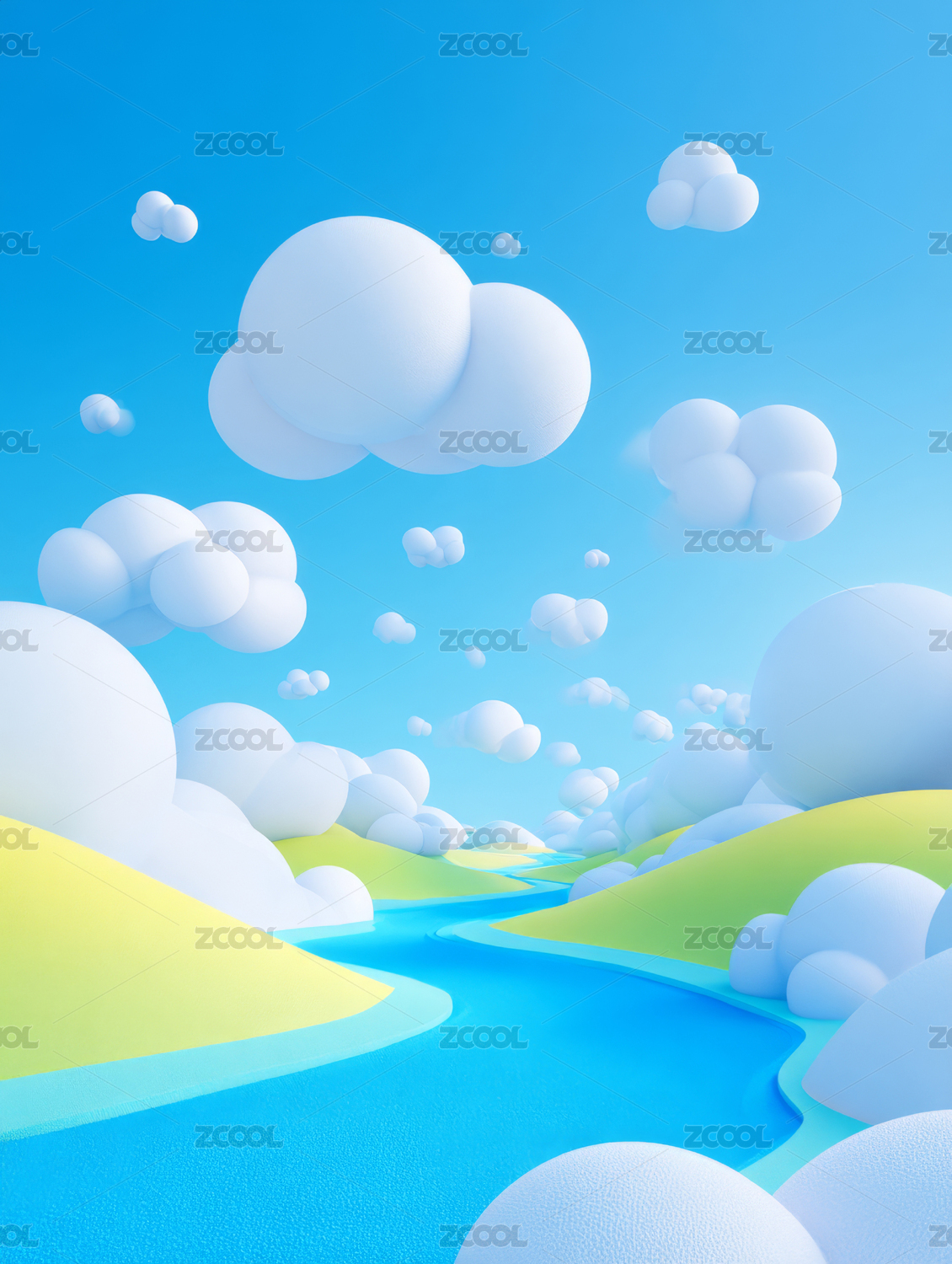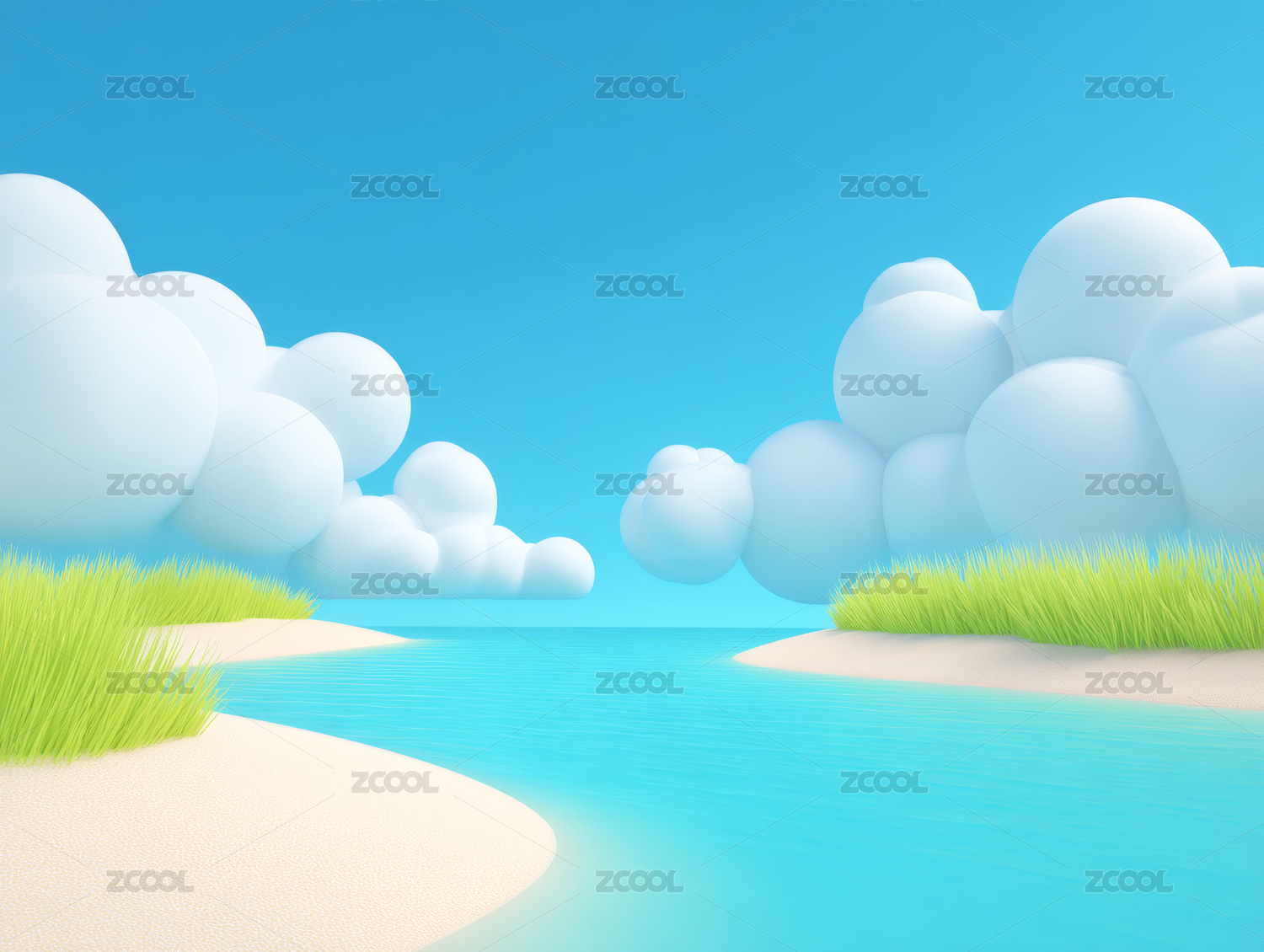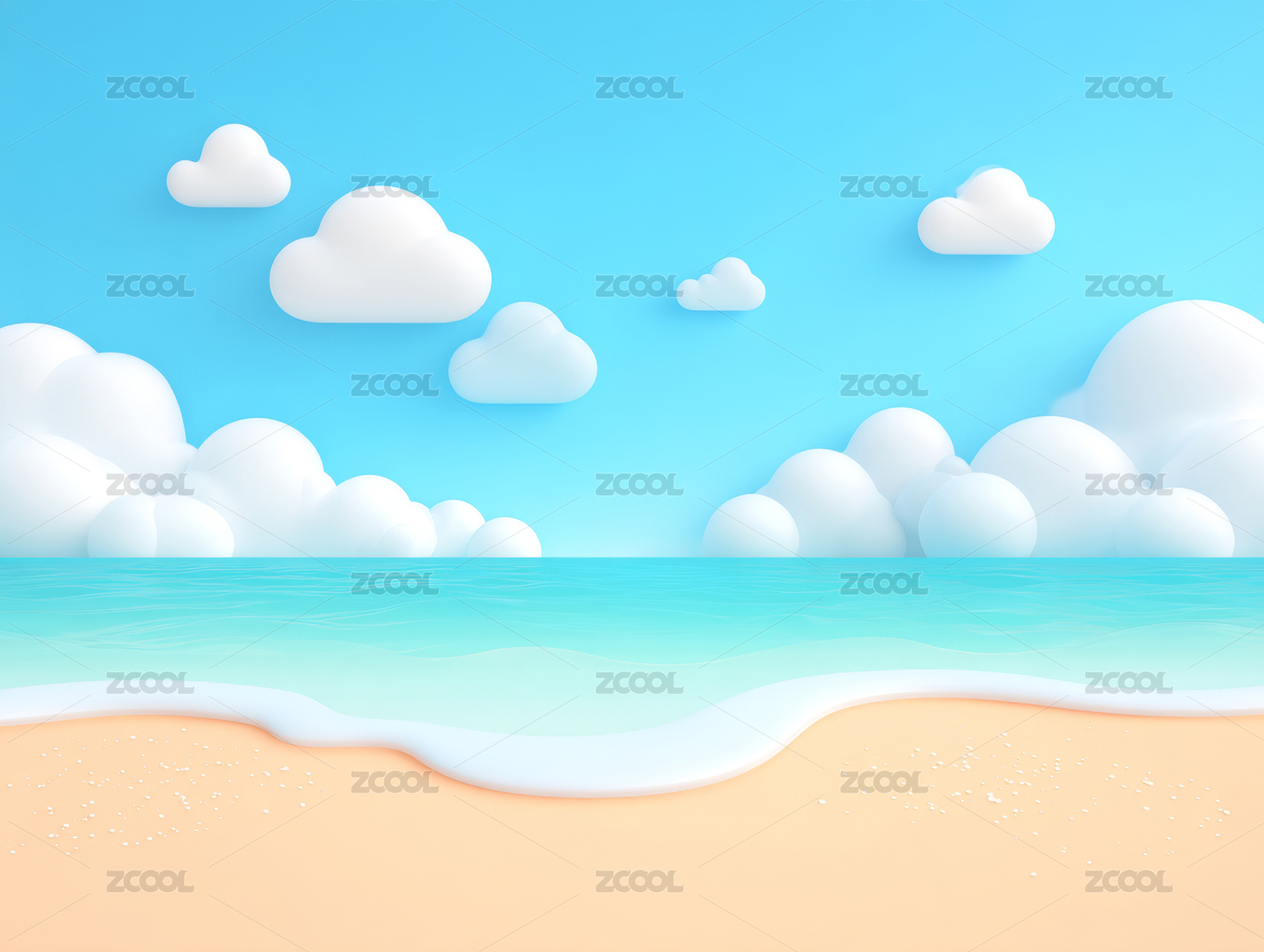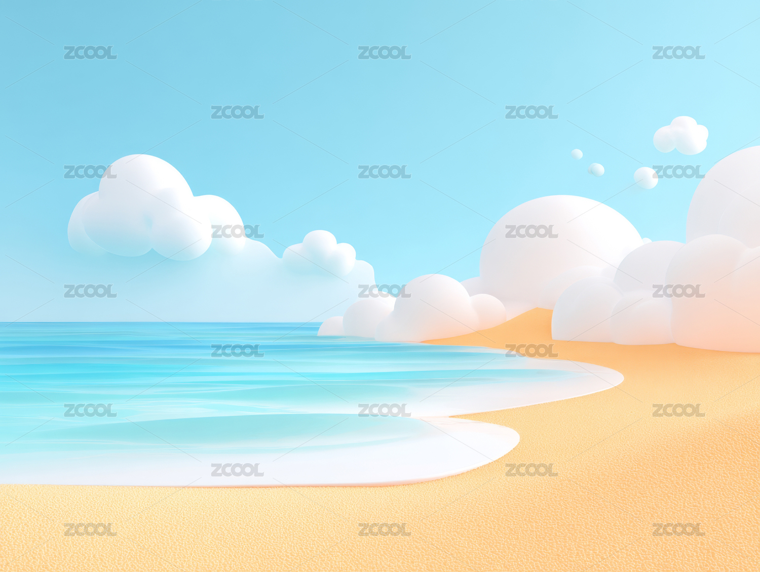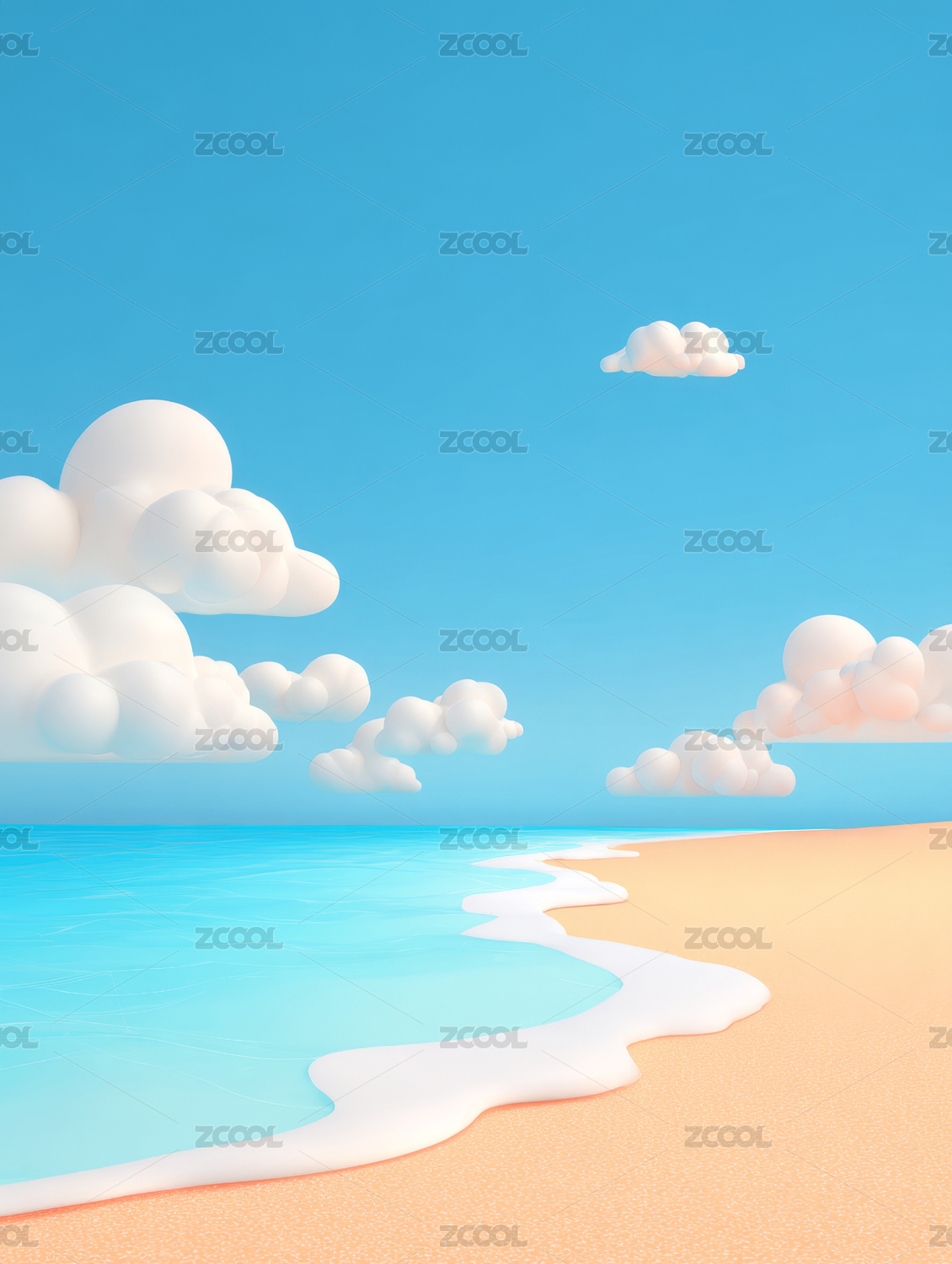 海滩,云朵,海洋,石头,天空,蓝色,黄色,简约,卡通,宁静