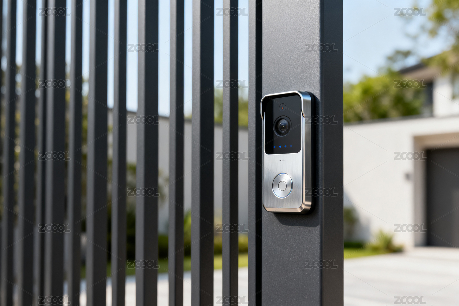 智能,门铃,安装,门,摄像头,现代,户外,建筑,技术,安全