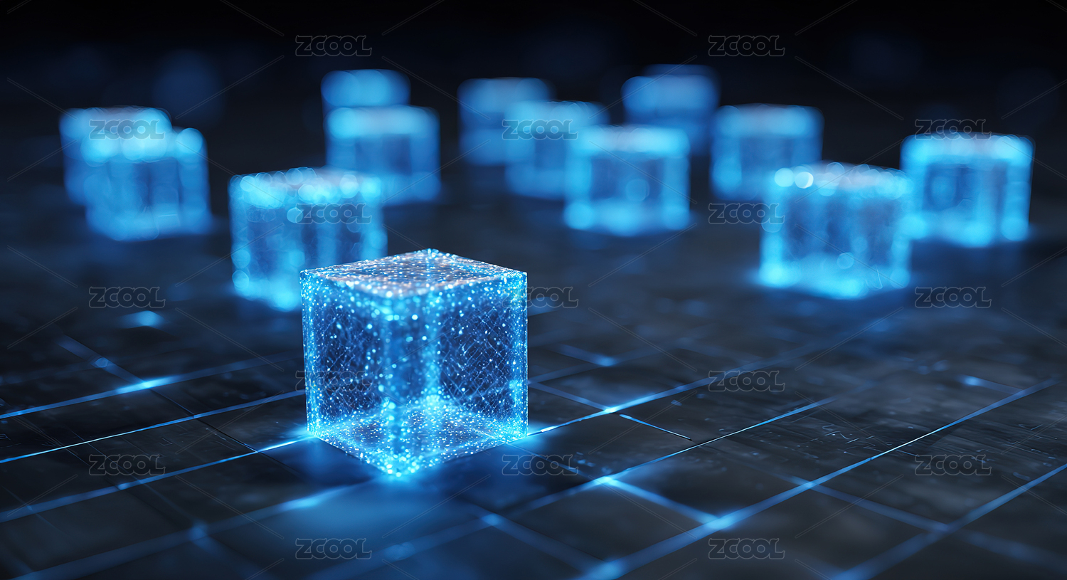 科技,立方体,发光,蓝色,电路板,未来感,光效,数字化