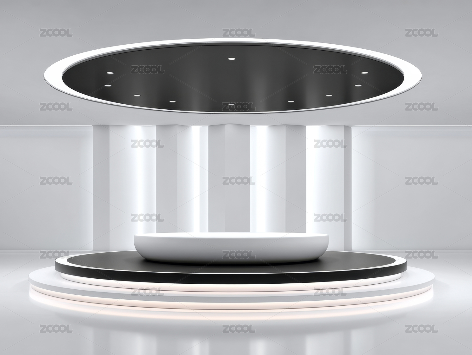 白色,圆形,舞台,灯光,现代,简洁,设计,室内,展示,建筑