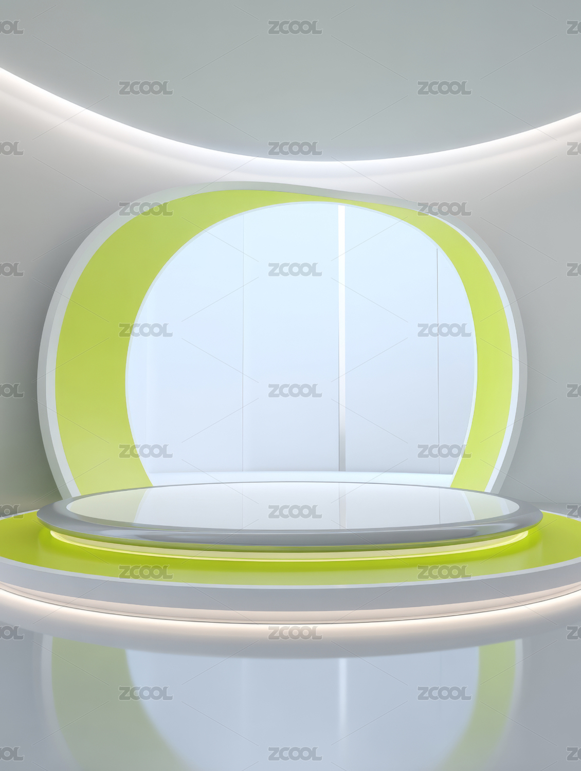现代,简约,舞台,绿色,灯光,弧形,设计,室内,展示
