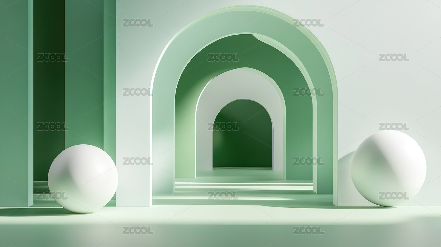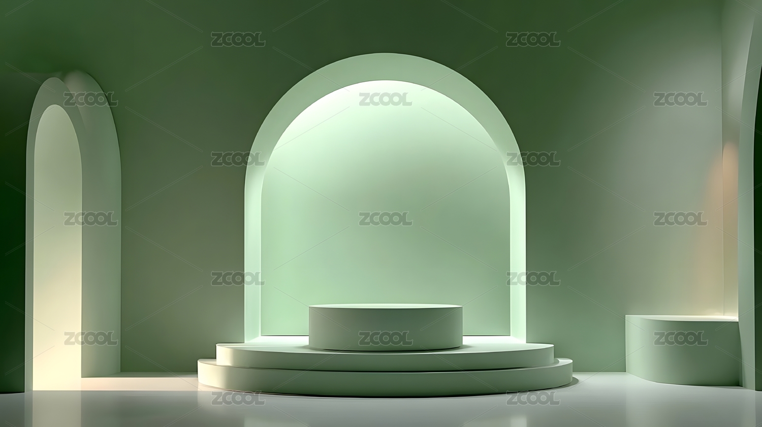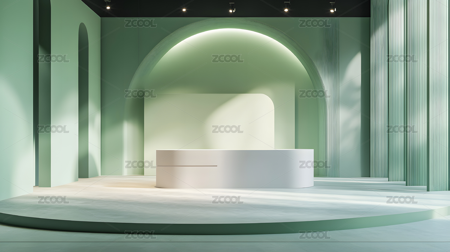 室内,未来,极简,平台,白色,拱形,绿色,背景,纹理,条纹