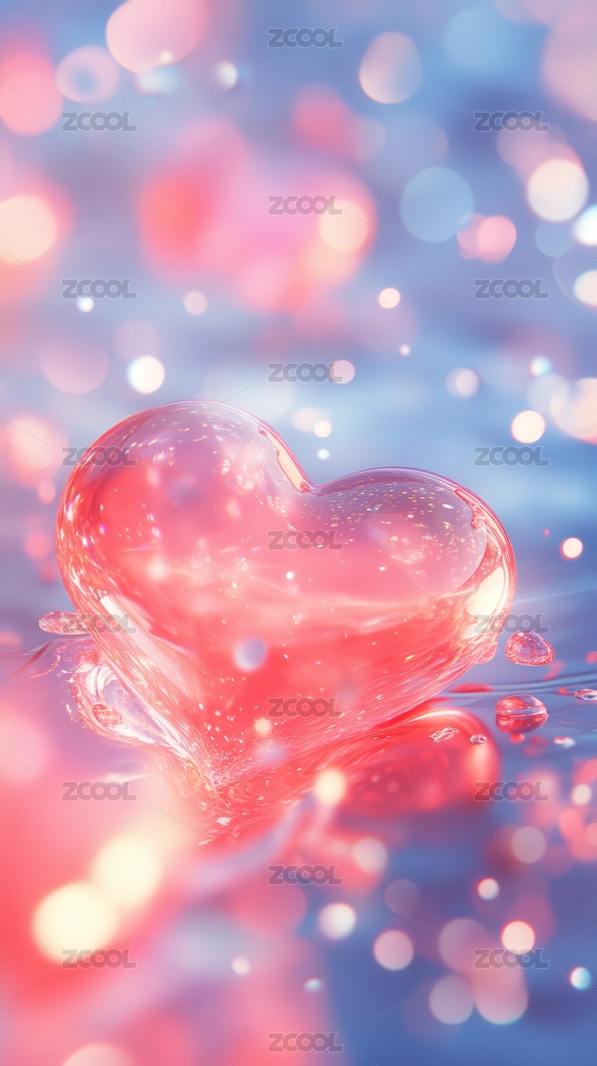 梦幻水波上的透明心形晶体