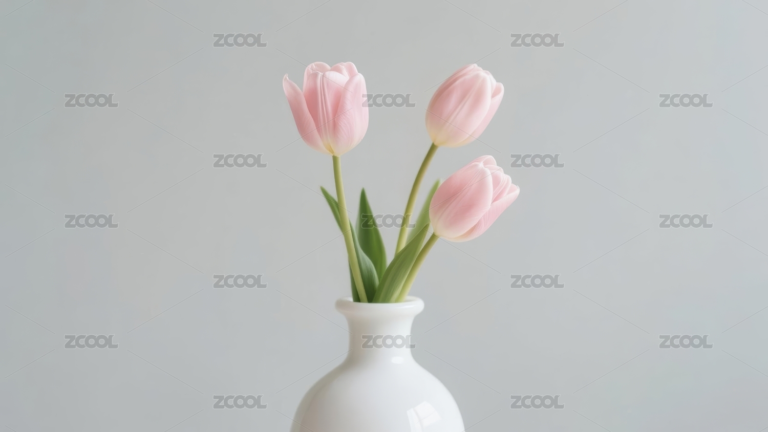 粉色郁金香与白瓷花瓶