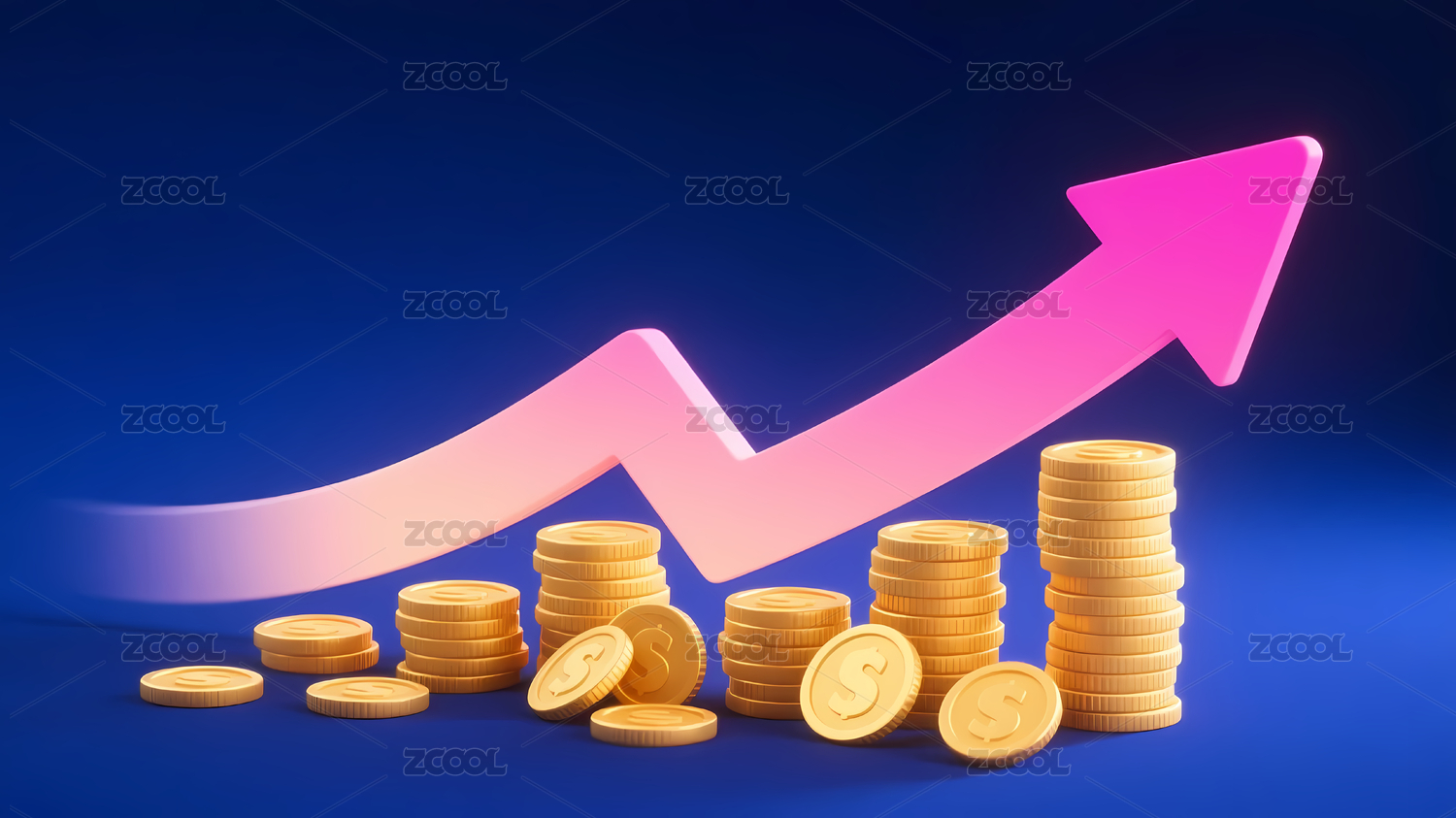 主视觉,商业,背景,元素,金币,暖色,金融,场景,上升,箭头