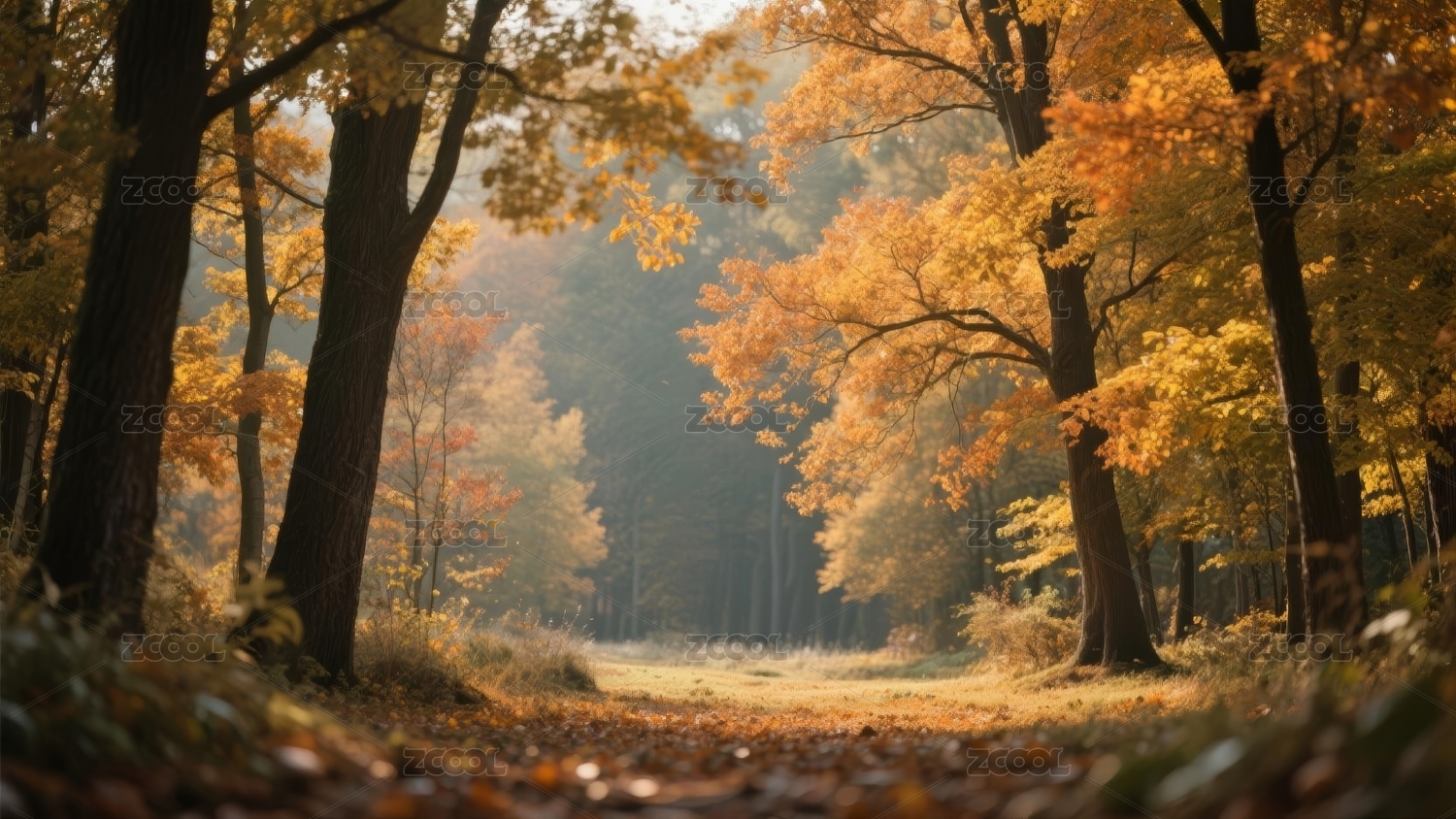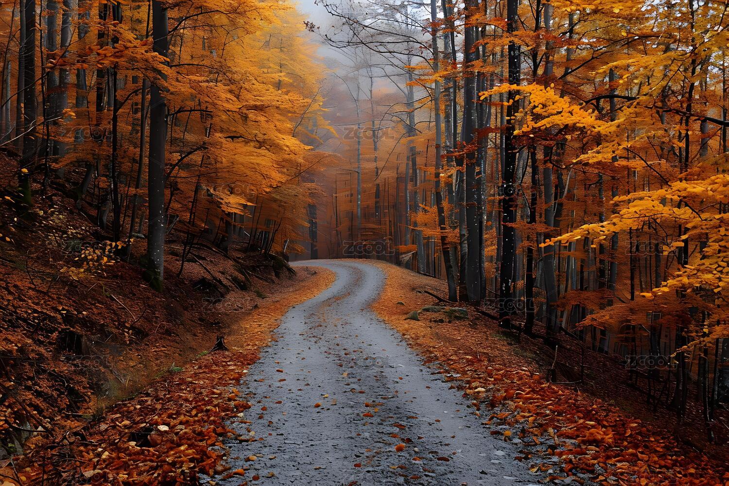 秋天秋季红叶山林蜿蜒小路风景壁纸
