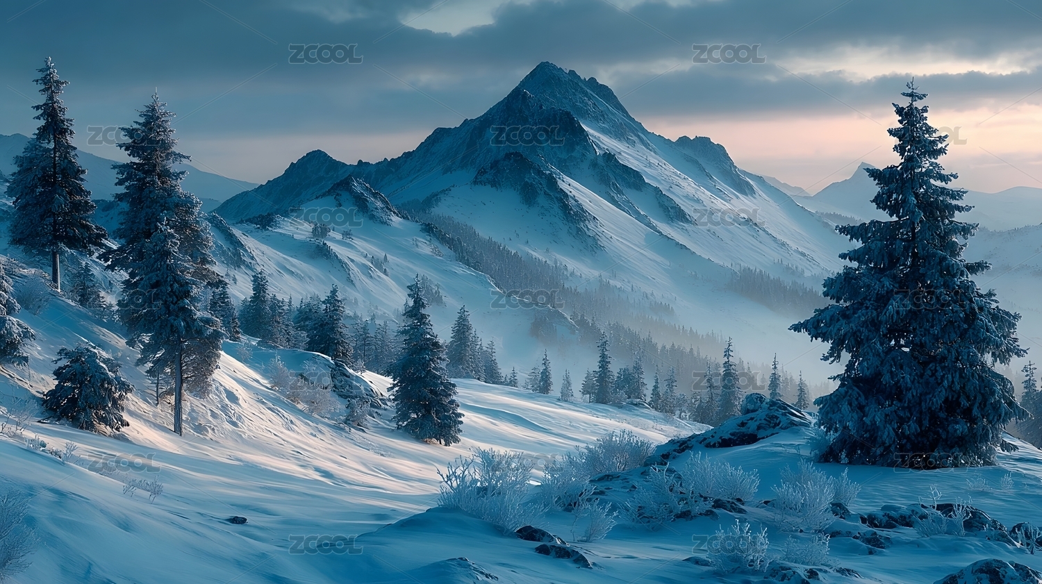冬日雪景山脉晨曦
