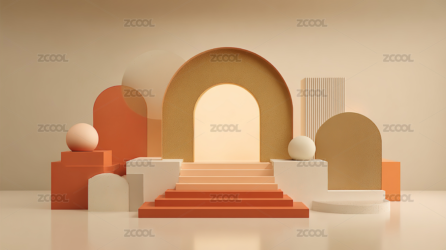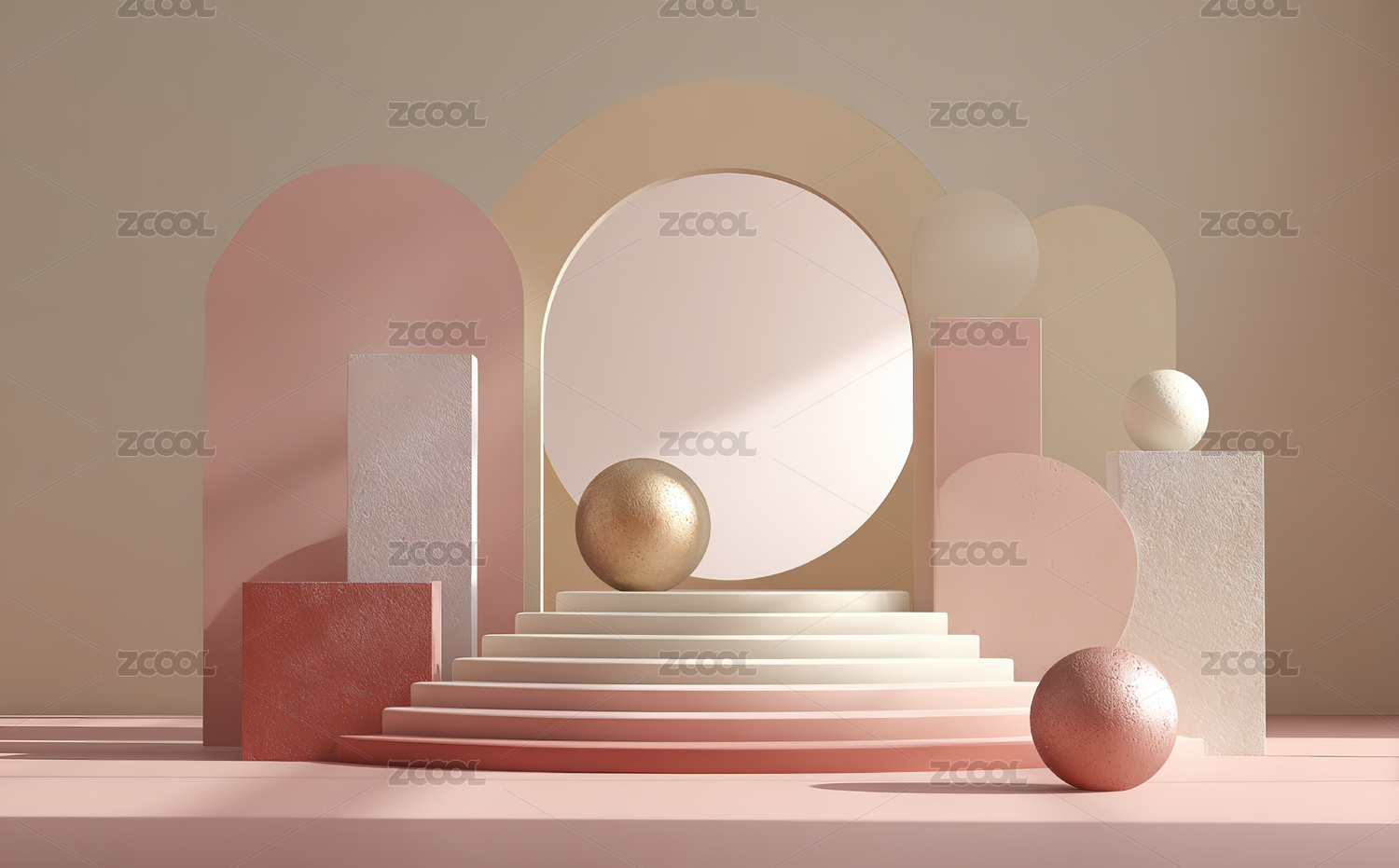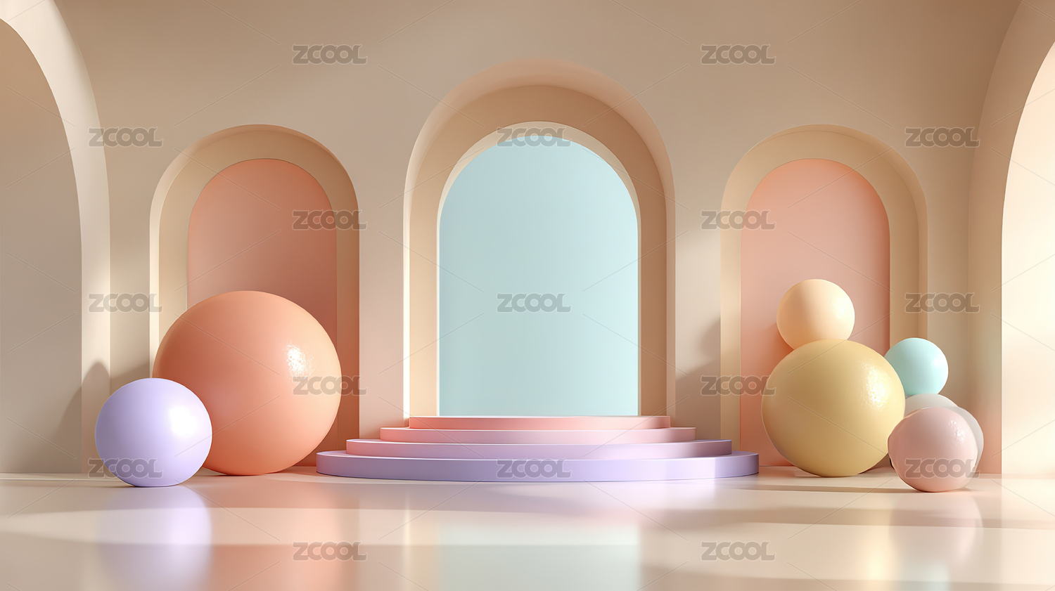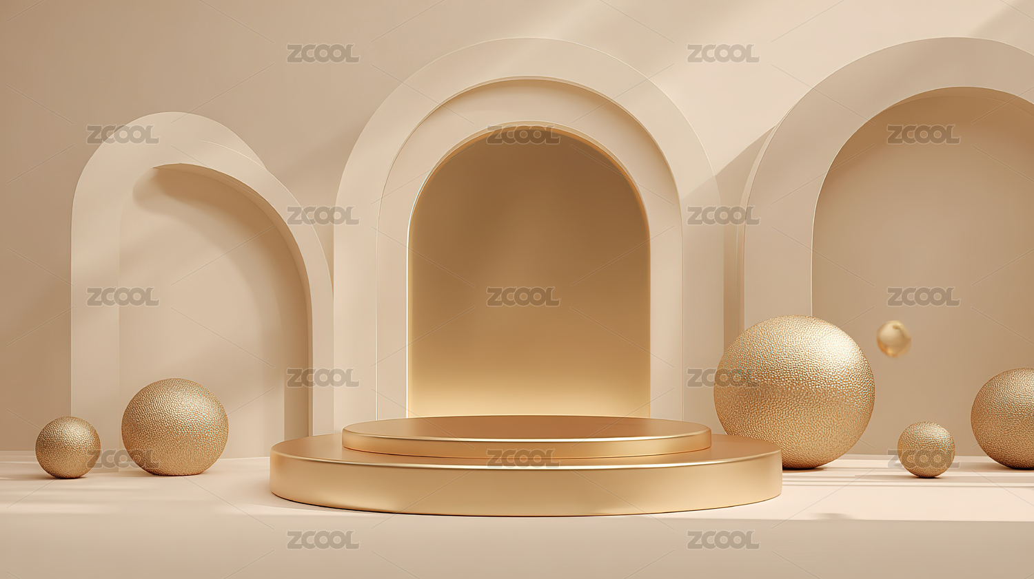 拱门,展台,金色,立体,几何,简约,时尚,温馨,柔和,装饰