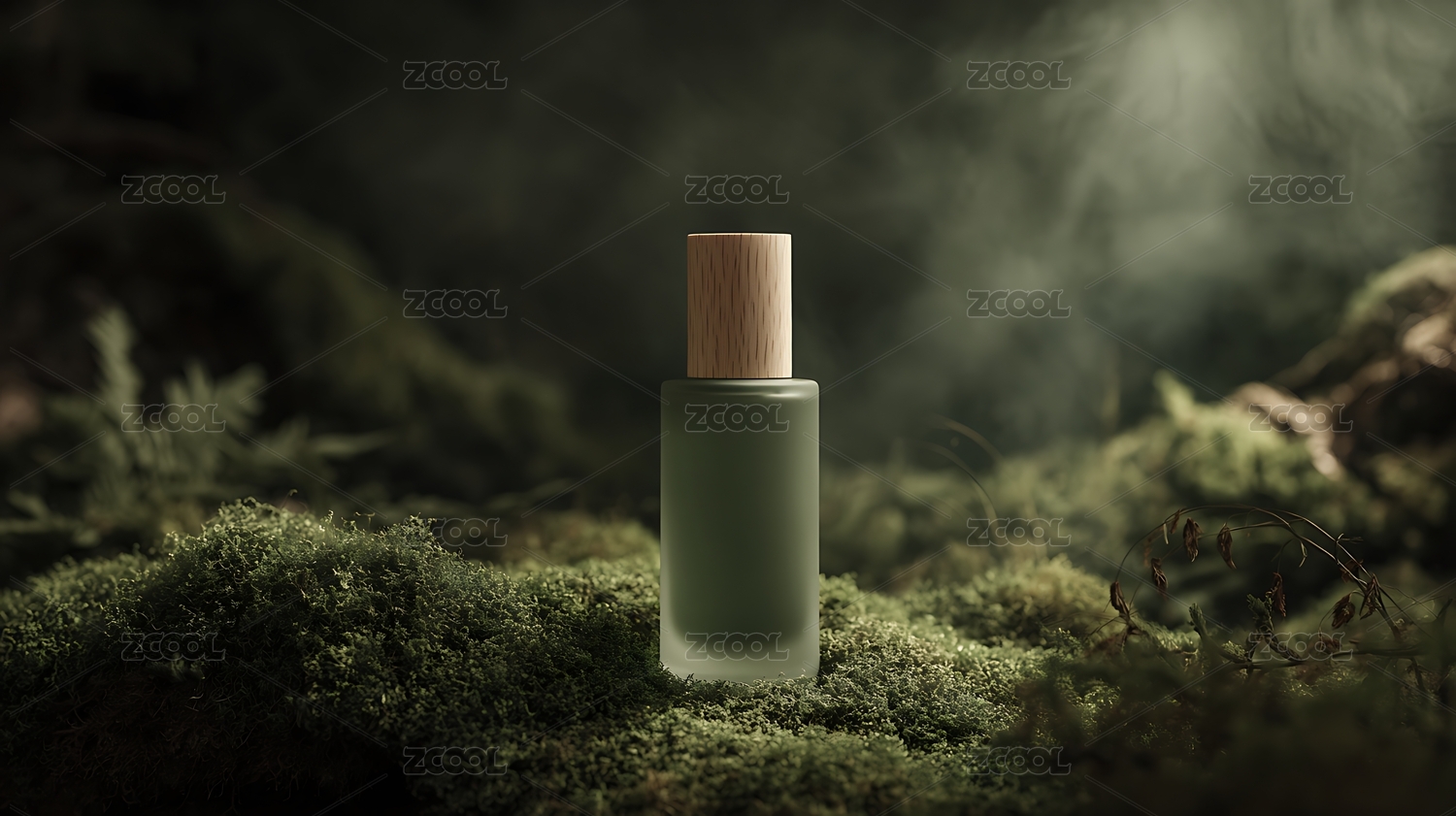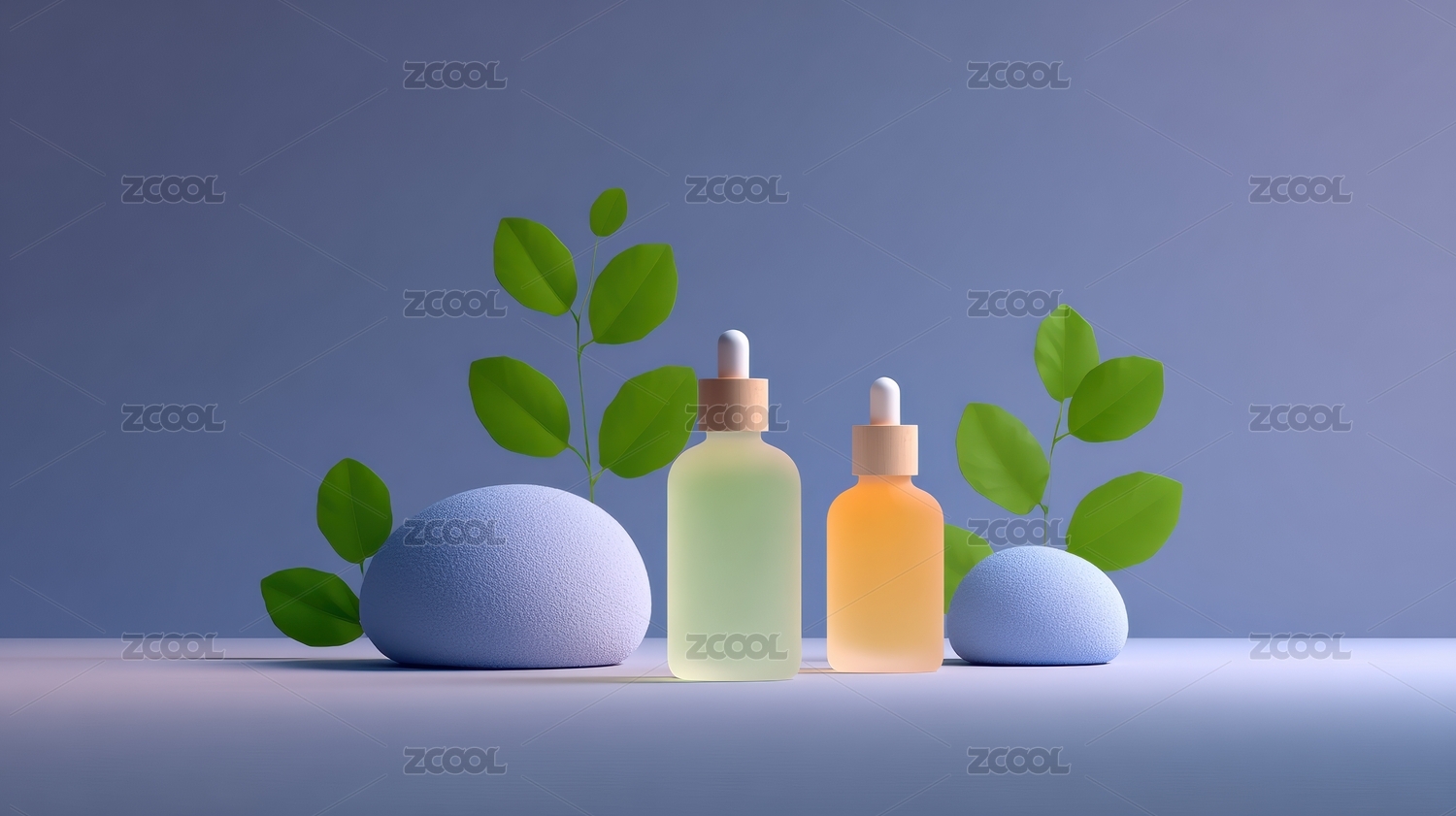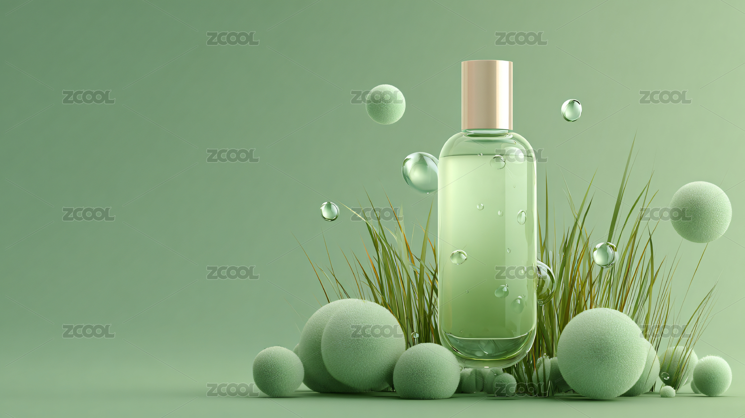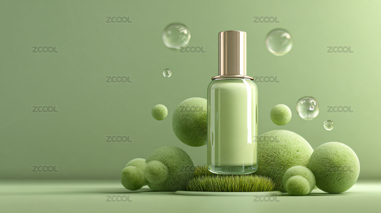 绿色,美妆,瓶子,气泡,场景,清新,护肤,产品,简约,自然