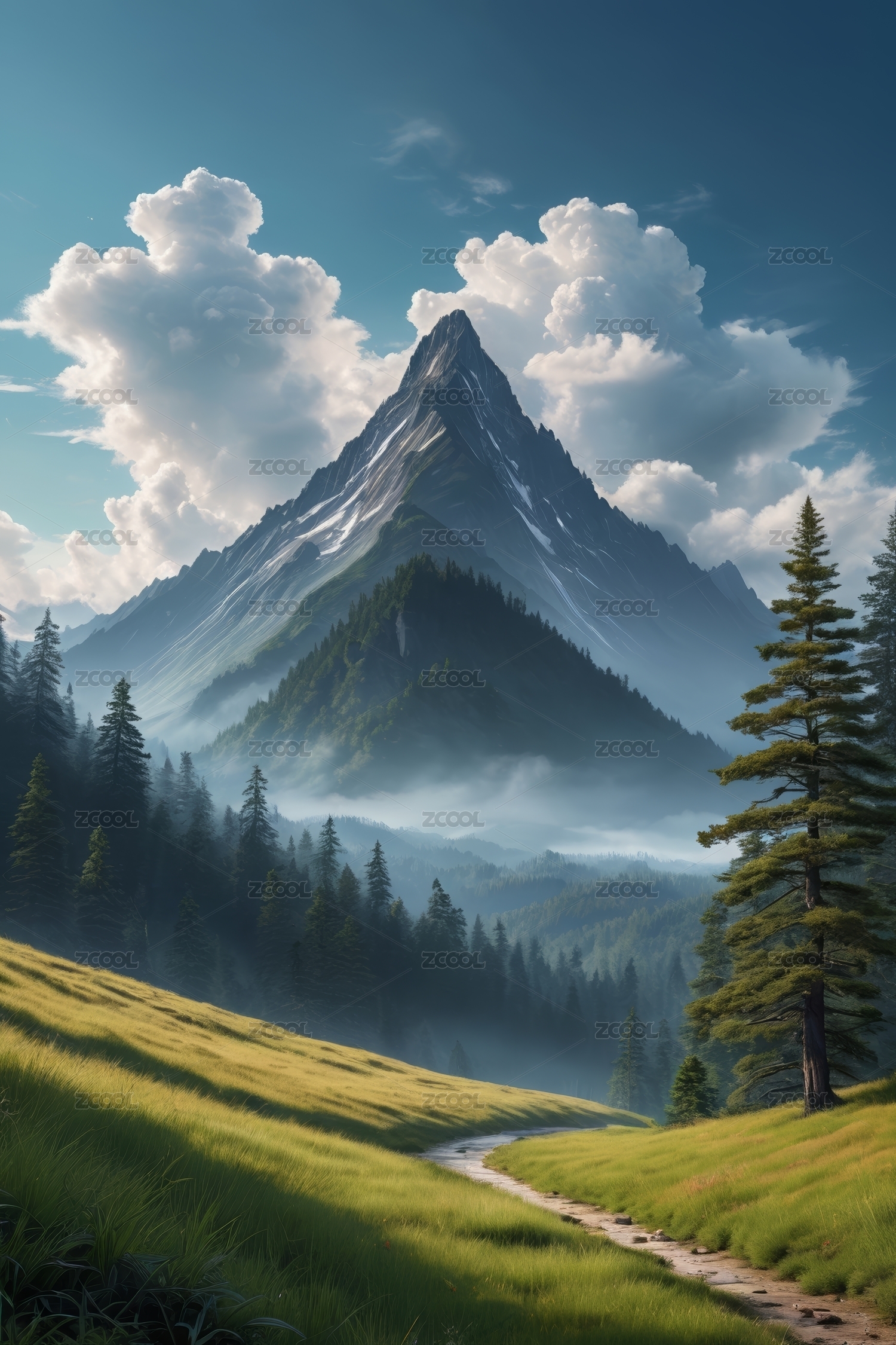 云雾缭绕的山间秘境 翠绿山峦间的宁静之路