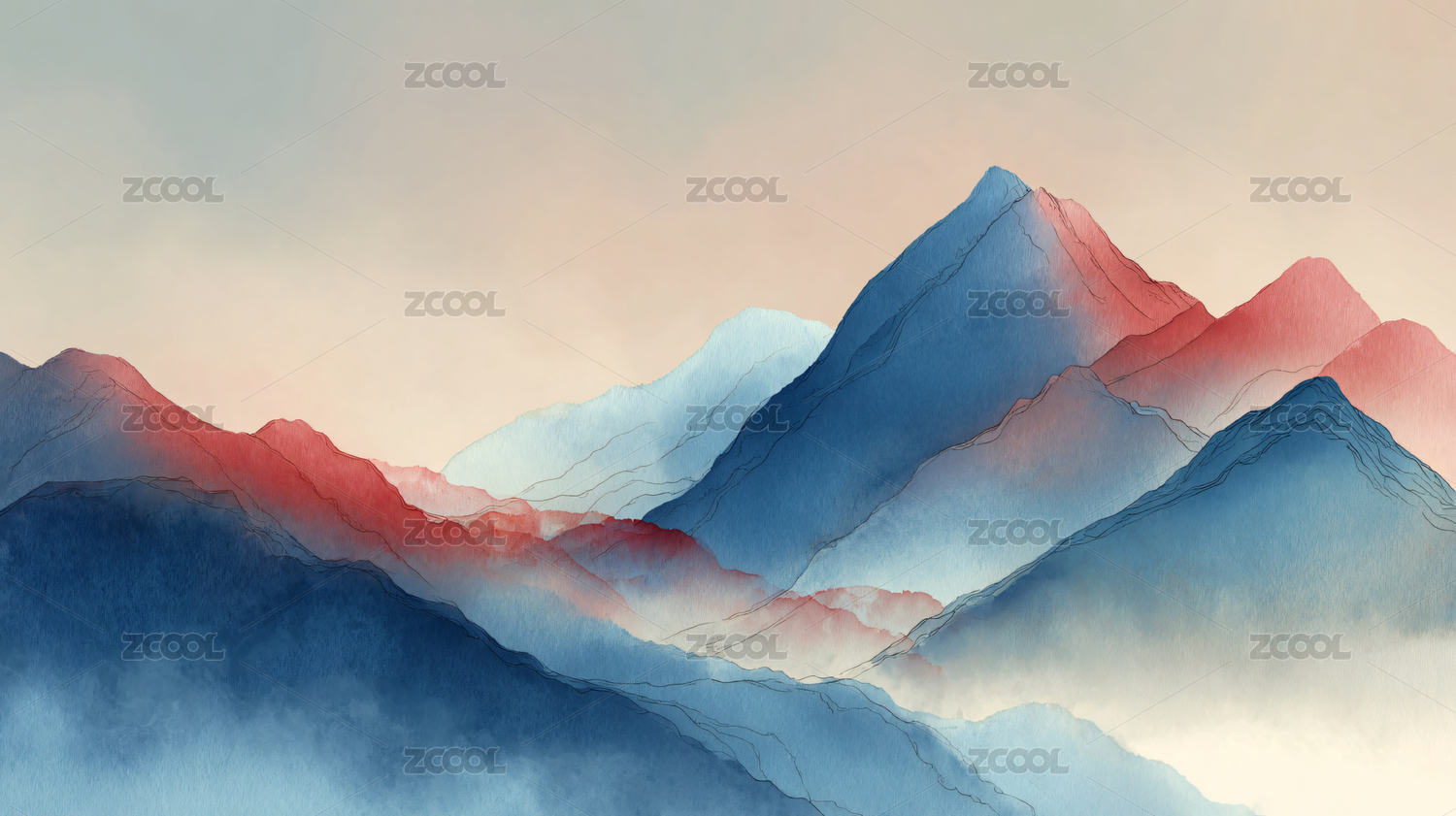 山水,意境,青绿,长卷,国画,云雾,山峦,国风,艺术,自然