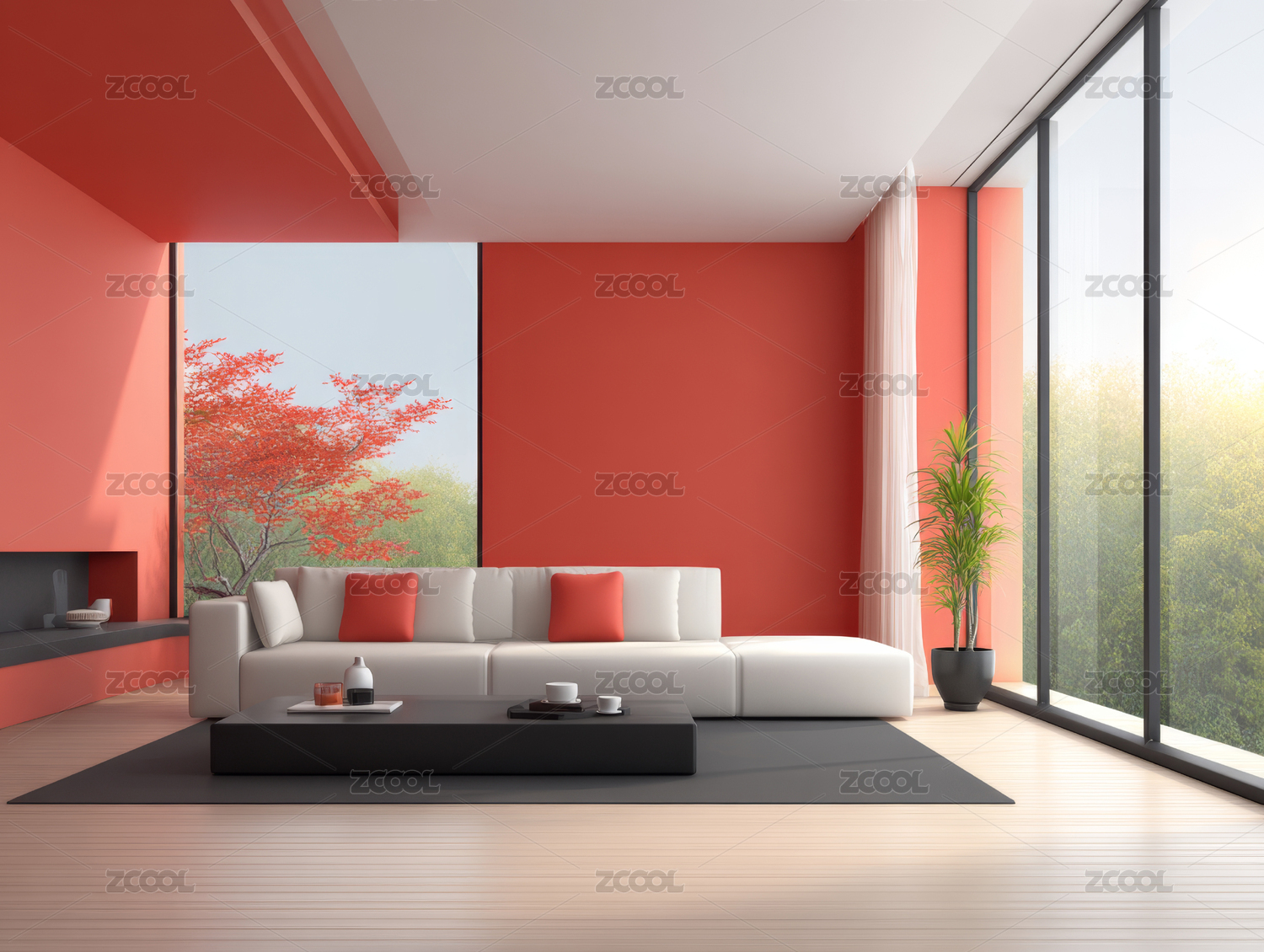 客厅,红色,沙发,大窗户,山景,现代,设计,室内,装饰,自然