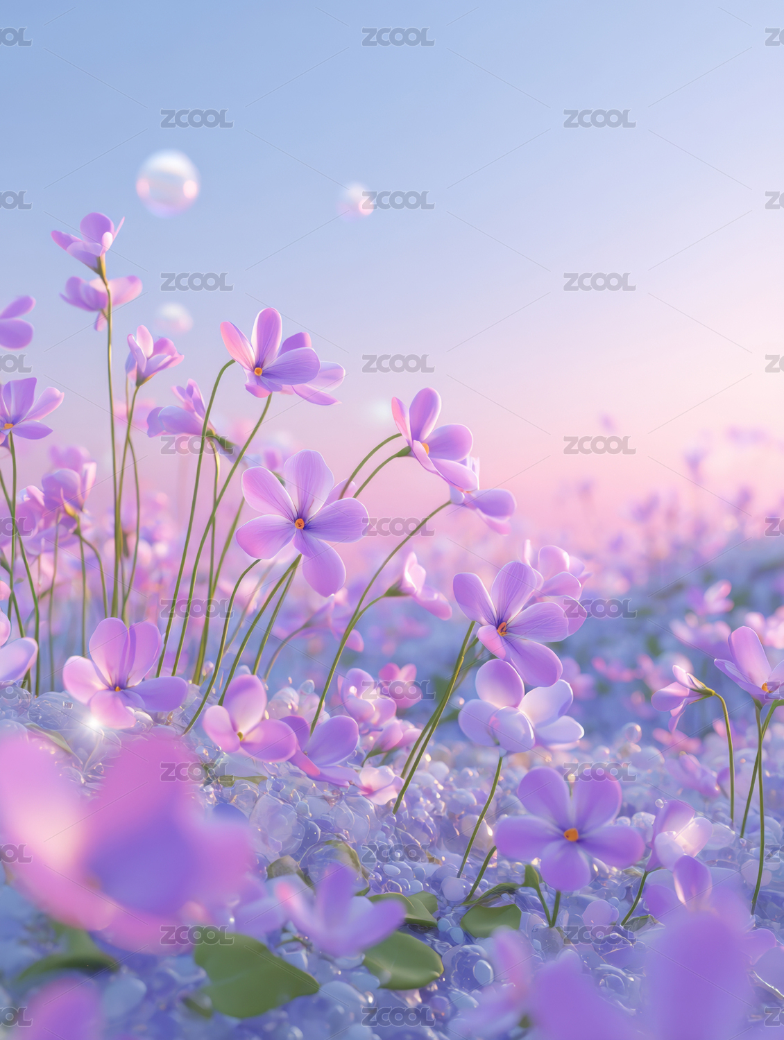 梦幻粉色花田泡泡背景