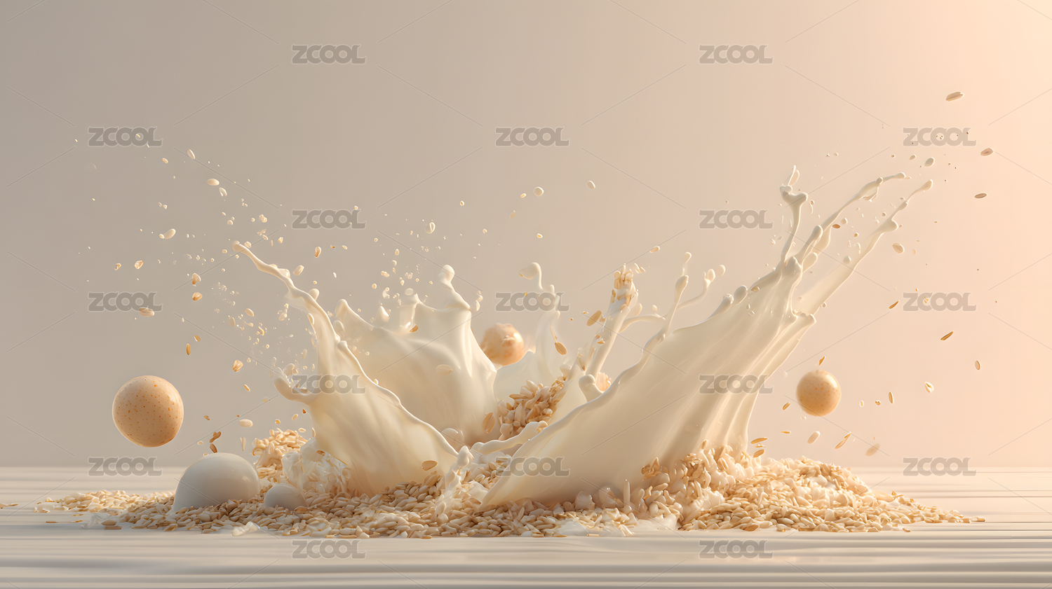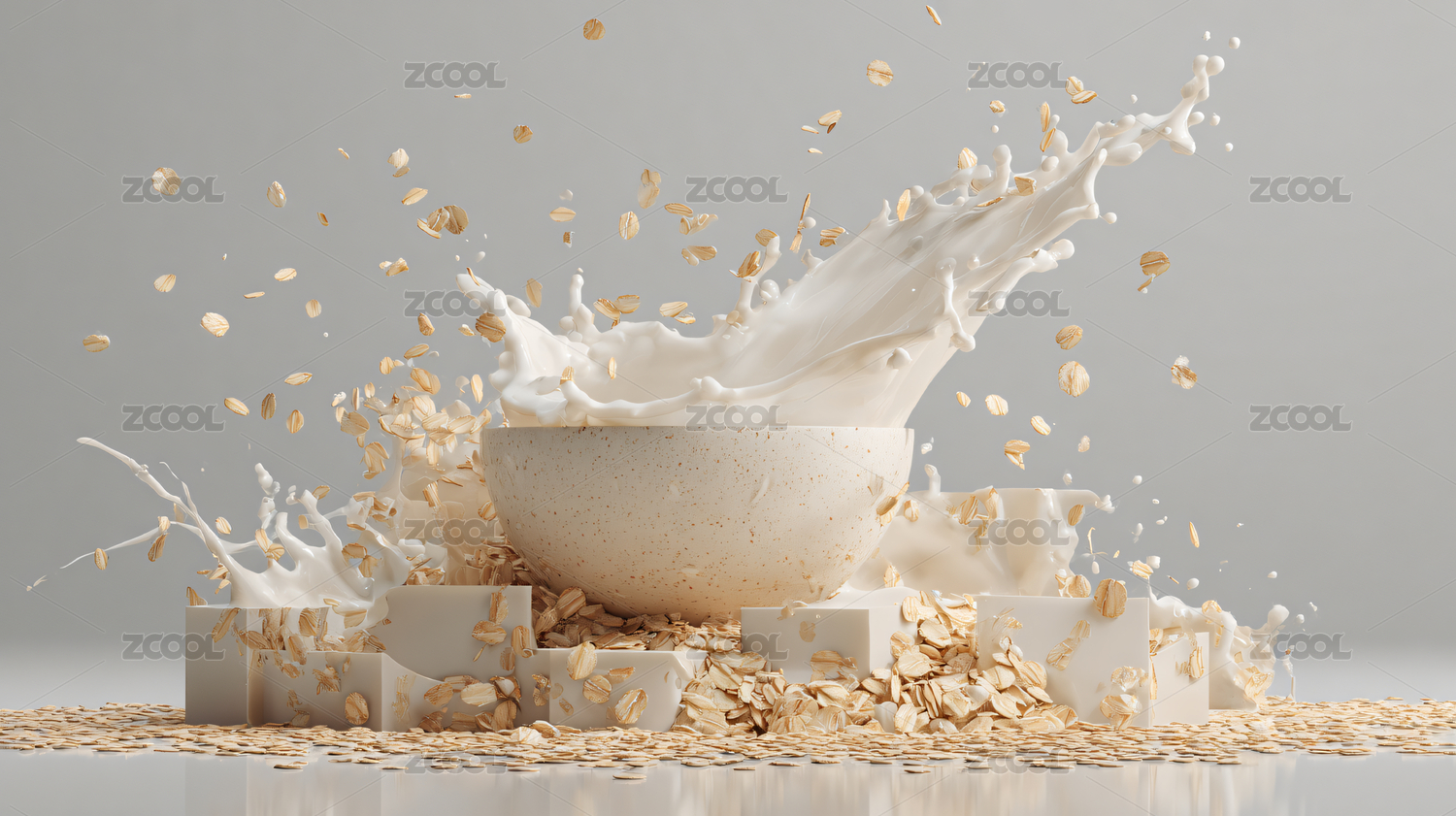 燕麦,牛奶,木碗,飞溅,早餐,健康,美食,营养,动态,食材