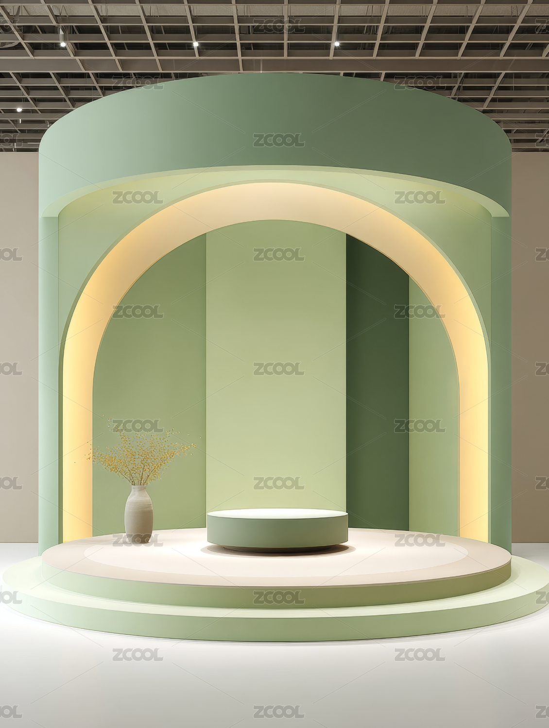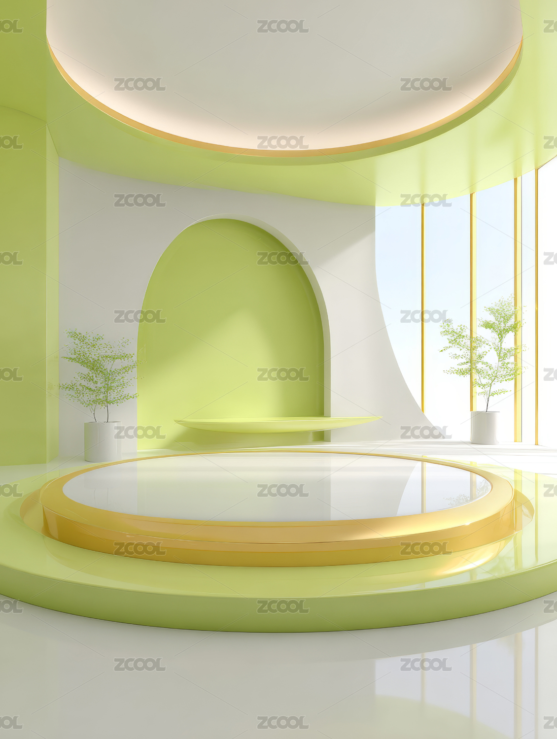 黄色,花树,室内,圆形,平台,现代,设计,柔和,光线,极简