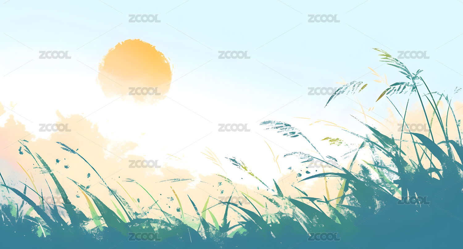 阳光,绿草,蓝天,自然,清新,户外,明亮,植物