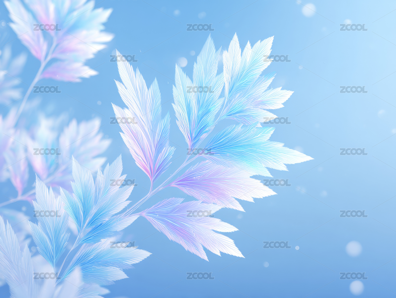 冰晶,植物,梦幻,蓝色,渐变,光影,自然,艺术