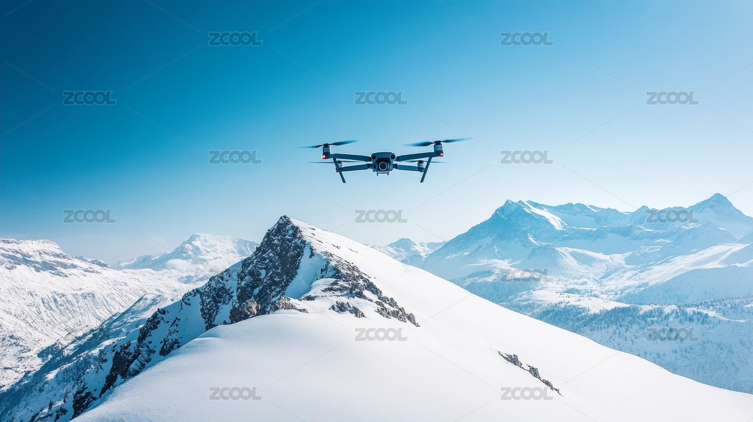 飞越雪山顶拍摄风景的无人机插图