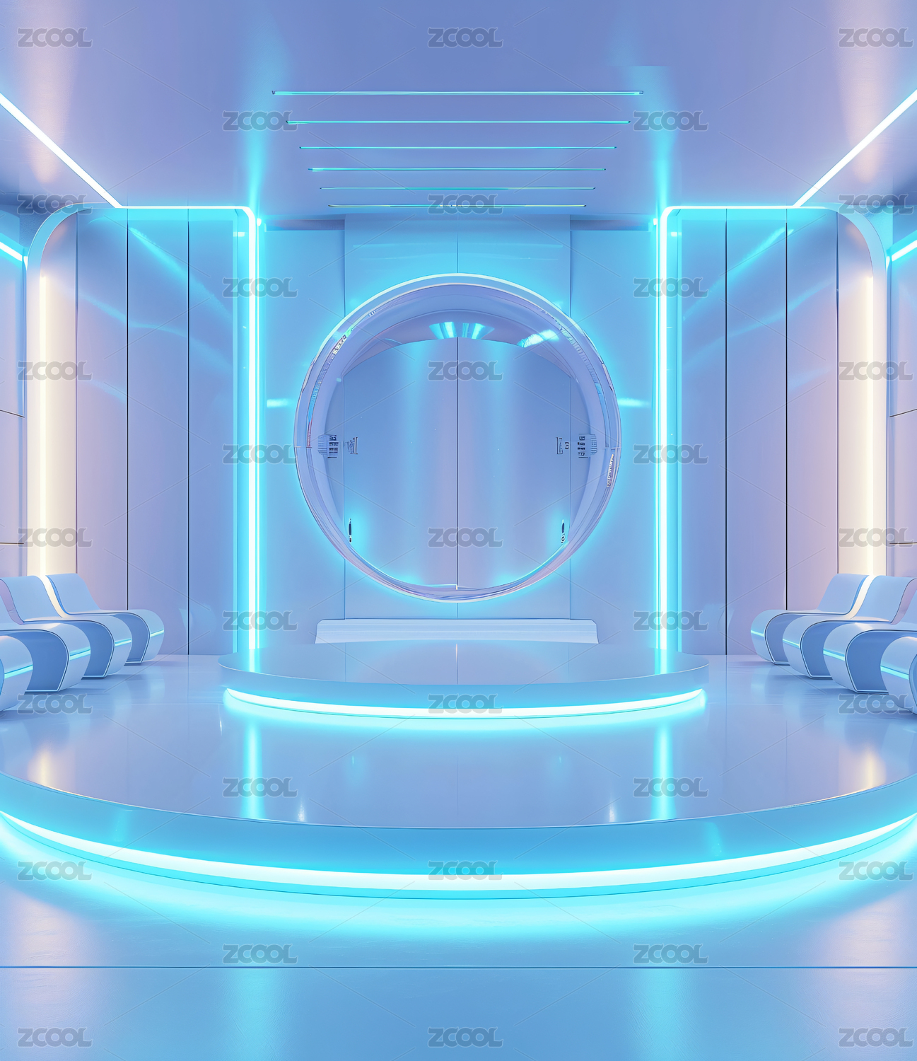 未来感圆形平台走廊