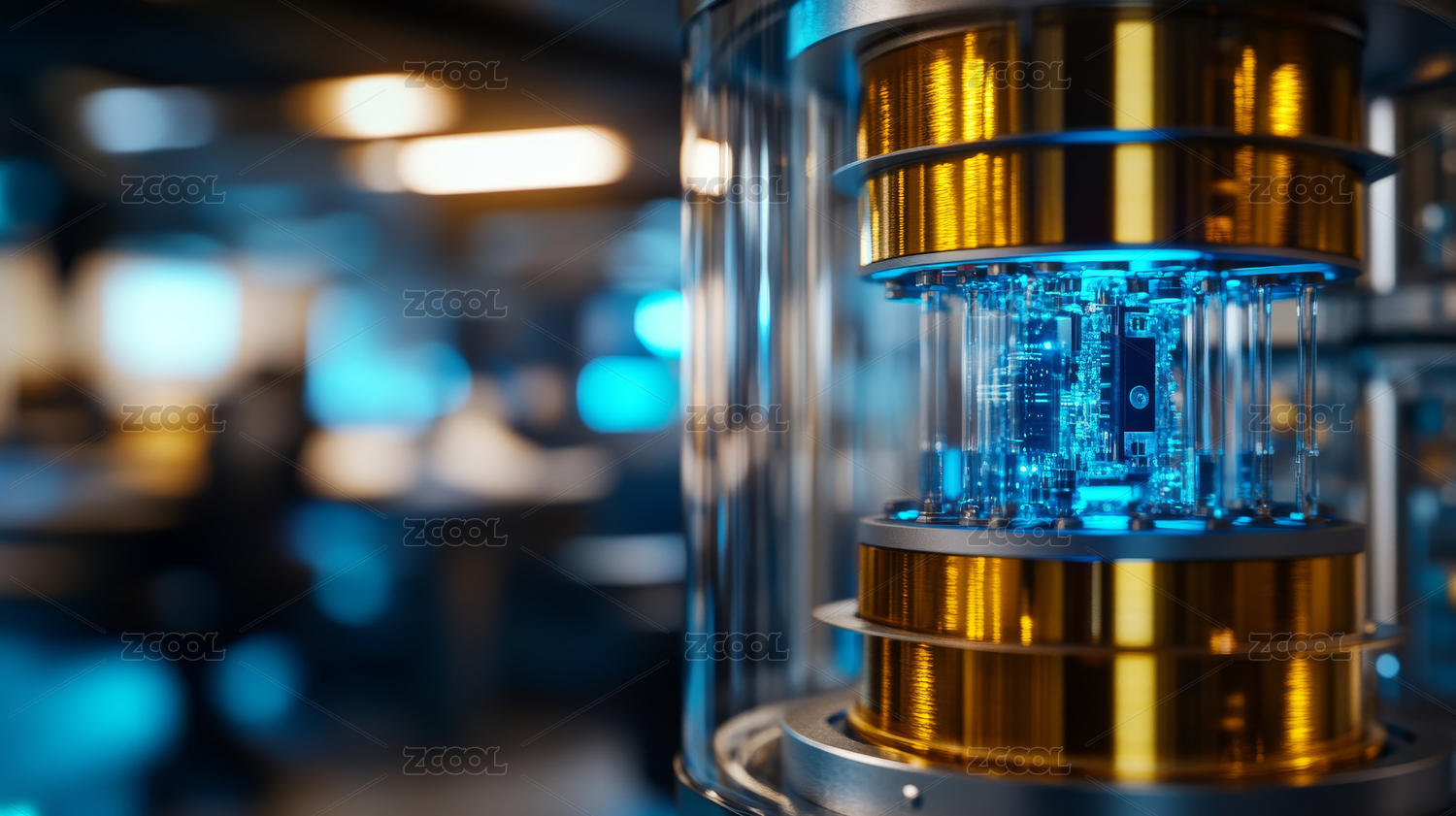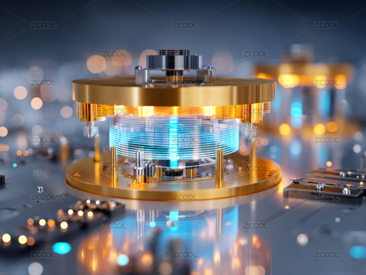 未来科技感量子计算机核心部件特写