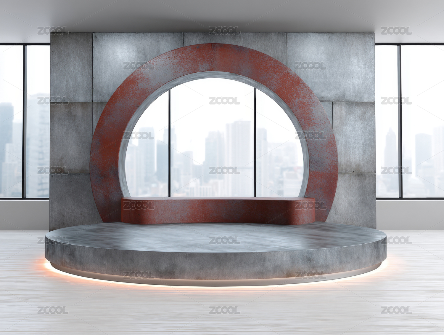 舞台,室内,现代,展示,窗户,建筑,灯光,圆形,铁锈色,设计