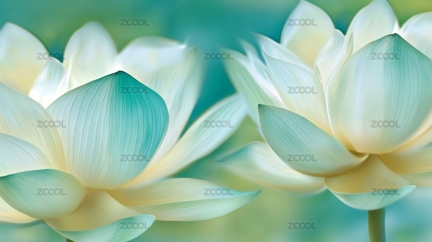莲花在宁静海洋中漂浮场景